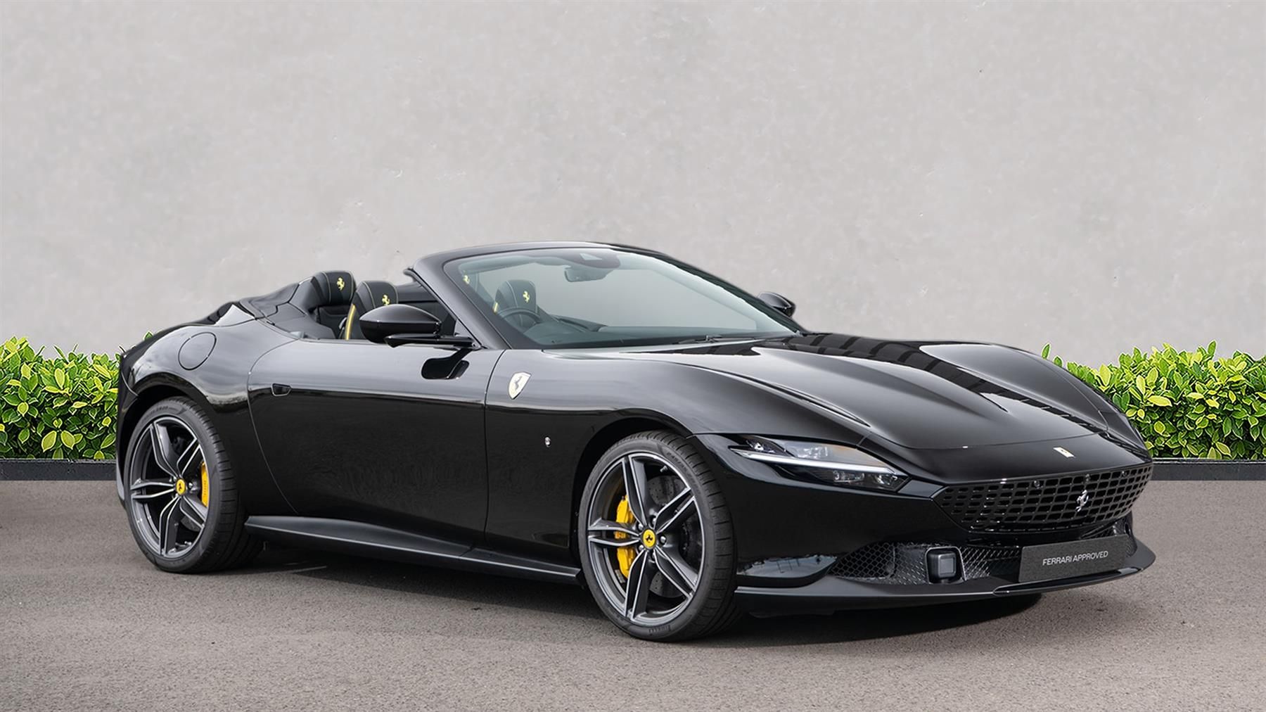 20" Forged Diamond Finished Alloys,Carbon Fibre Steering Wheel with LED Shift Lights,Scuderia Ferrari Shields,Carbon Fibre Exterior Kickplate,Passenger Display,Premium Hi-Fi System,Surround View Camera,Heated Steering Wheel,Dual Mode MagneRide Suspension,Giallo Modena Brake Callipers,Leather Cockpit Bands - Charcoal,Ceramic Black Tailpipes,Long & Thin Tricolore Badge,Badges in Matt Black,Classic Colour - Nero Daytona,Nero Soft Top,Contrast Stitching - Giallo,Tonneau Cover In Tessuto,Embroidered Cavallino Emblem on Headrest - Giallo,Cavallino On Rear Seats - Giallo,Overmats with Embroidered Logo,Leather Inserts On Seat Bolsters - Giallo,Leather Seat Centres,Aluminium Footrest,Full Electric Front Seats,Central Seat Stripe - Giallo,Blind Spot Detection,Back Radar,Advanced Front Driving Camera,Electrochromic Exterior Rear View Mirrors,Adaptive Front-Lighting System,Wireless Smartphone Charger,Balance of Ferrari Service Plan until 2032,Balance of Ferrari Warranty until 2029