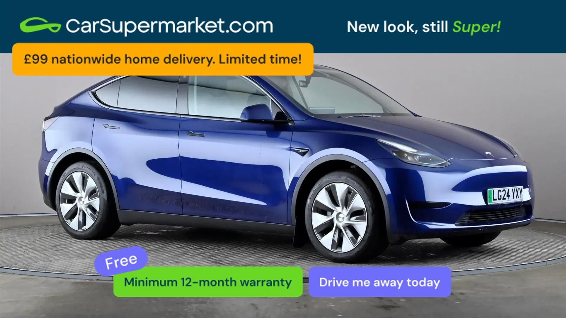 Blind Spot Monitoring, Bluetooth, Sat Nav, Rear View Camera, Digital Radio, Expansive Glass Roof, Heated Front Seats, Heated Rear Seats, Heated Steering Wheel, Keyless Entry;Tesla Model Y RWD Auto (Blue) Supplied with a 159-point inspection and a minimum 12-month warranty. MOT valid until 24/03/2027. A premium Tesla Model Y featuring blind spot monitoring, Bluetooth, satellite navigation, rear view camera, digital radio, expansive glass roof, heated front seats, heated rear seats, heated steering wheel and keyless entry.