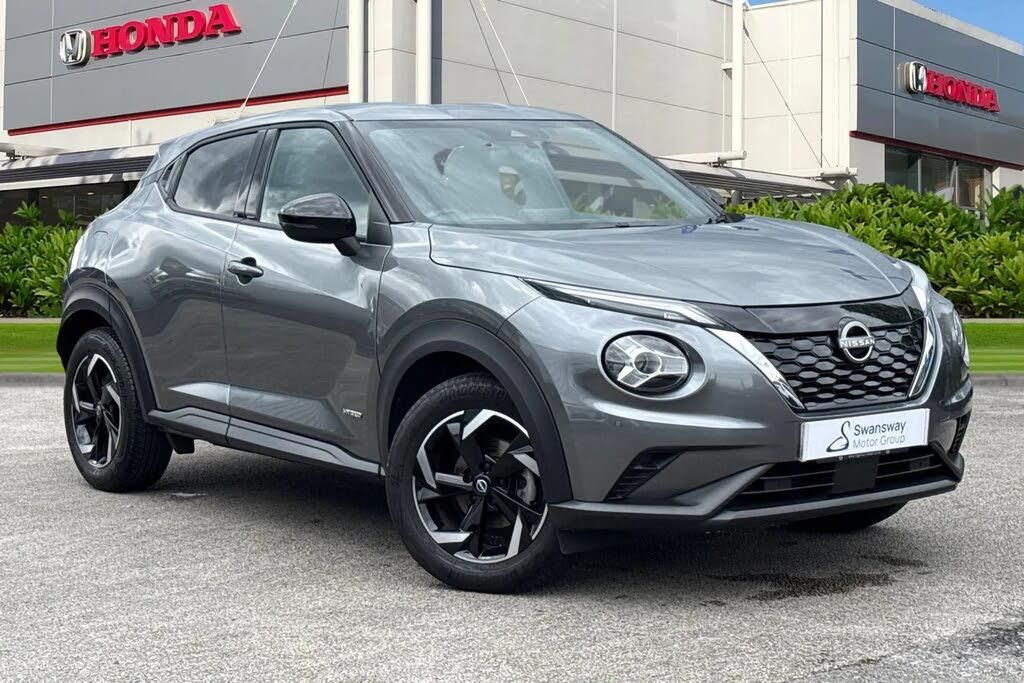 Nissan Juke 1.6 Hybrid N-Connecta 5dr Auto in sleek grey offers a stylish and efficient compact SUV experience, combining bold design with modern hybrid technology. Powered by a 1.6-litre petrol hybrid engine paired with an automatic transmission, it delivers smooth performance, improved fuel efficiency, and a refined drive ideal for both city commuting and longer journeys. The distinctive exterior design is enhanced by striking LED daytime running headlights, giving the Juke a sharp, contemporary look while improving visibility and safety on the road. Its elevated driving position provides excellent all-round awareness, making every trip feel confident and controlled. Inside, the N-Connecta trim offers a well-equipped and comfortable cabin. Air conditioning ensures a pleasant environment in all seasons, while Bluetooth connectivity and a quality radio system keep you entertained and connected on the move. The integrated satellite navigation system makes every journey straightforward, helping you reach your destination with ease. Convenience and safety are further enhanced with cruise control for relaxed motorway driving, and rear parking sensors to assist with manoeuvring in tighter spaces. The cabin layout is driver-focused, with intuitive controls and practical storage solutions throughout. Blending efficiency, technology, and eye-catching design, this Nissan Juke Hybrid is an excellent choice for drivers seeking a modern SUV that stands out while remaining economical and easy to drive. By choosing this vehicle, which is compliant with ULEZ, you'll not only benefit from cleaner, healthier air in urban environments, but also reduce your carbon footprint and running costs.