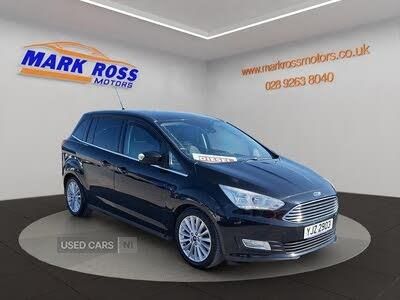 Driver's information system, Easy fuel capless refuelling system, Electric power steering, Engine start button, Multi function display colour screen, Rear parking sensor, Trip computer, Steering wheel mounted audio controls, SYNC 2 DAB radio/CD, 8" colour touch screen, emergency assistance, Bluetooth connection, advanced voice control, USB connection, 'Global' closing of front/rear windows, Auto dimming rear view mirror, Automatic headlights, Automatic rain sensing wipers, Body colour bumpers with black rubbing strip, Body colour door handles, Body colour door mirrors with integral indicators, Chrome finish on upper door line, Dual sliding rear doors, Electric front windows + drivers one touch, Electric heated door mirrors, Electric rear windows, Front fog lamps, Intermittent rear wash/wipe, LED daytime running lights, Quickclear heated windscreen, 12V accessory sockets - front and rear, 3 spoke steering wheel, Aluminium scuff plates, Ambient interior lighting, Auxiliary power socket, Centre armrest with storage box, Child observation mirror, Cloth upholstery, Courtesy light in luggage compartment, Driver's seat manual height adjust, Driver/passenger lumbar adjustment, Dual zone electronic climate control, Footwell illumination, Front + rear carpet mats, Front/rear courtesy lights, Front/rear reading lights, Fully adjustable front headrests, Isofix child seat attachment, Leather gearknob, Passenger seat height adjuster, Premium centre console, Rake/reach adjustable steering wheel, Satin chrome interior door handles, Sports style front seats, Three height adjustable rear head restraints, Tonneau cover, Versatile split folding rear seat - 40/20/40, 7 three point seatbelts, ABS + traction control, Driver and passenger airbags, Driver and passenger side airbags, Electronic brake force distribution, Emergency brake assist, ESP, Fasten seatbelt reminder, Front and rear curtain airbags, Height adjustable front seatbelts, Hill start assist, Intelligent Protection System (IPS), MyKey system, Power child locks, Tyre pressure monitoring system, Anti-theft immobiliser, Locking wheel nuts, Thatcham 1 volume sensing alarm, Diesel particulate filter, Satin black trim, Mini steel spare wheel