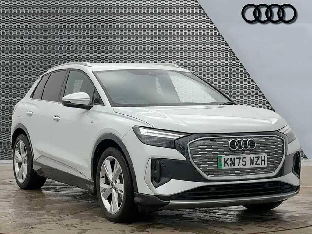 Finished in Glacier White, this Approved Used Audi Q4 e-tron 40 S Line delivers a clean, modern look combined with impressive electric performance. With a 63kWh battery offering up to 250 miles of range, it also supports rapid charging from 10-80% in as little as 27 minutes using a 175kW public charger. The exterior is enhanced by S Line styling, 20-inch 5-Y-spoke alloy wheels and striking LED headlights with LED rear lights. Aluminium roof rails, privacy glass and projection lighting in the mirrors add both practicality and a premium touch, while the sculpted body and contrast bumpers complete the dynamic design. Inside, the cabin offers a refined and driver-focused environment, featuring a 10.25-inch Audi Virtual Cockpit and MMI Navigation Plus with an 11.6-inch touchscreen display. The interior is finished with darkened matt brushed aluminium inlays, ambient lighting and a multifunction leather steering wheel with S badging. Heated front seats, dual-zone climate control and keyless start ensure everyday comfort and convenience. Technology includes Audi Smartphone Interface, Bluetooth connectivity and DAB radio, alongside Audi Drive Select for a tailored driving experience. Safety is well covered with adaptive cruise control, lane departure warning with emergency assist, Audi Pre-Sense front, side assist with rear cross-traffic alert and front and rear parking sensors with a rear-view camera. A stylish and efficient all-electric SUV, this Q4 e-tron S Line combines practicality, advanced technology and Audi's signature design. For more information on this Audi Q4 please give us a call and a member of our friendly sales team will be more than happy to help you further to book a test drive or introduce you to a range of flexible finance packages to suit you. This vehicle is fully compliant with either the Clean Air Zone (CAZ) or Ultra Low Emission Zone (ULEZ) standards