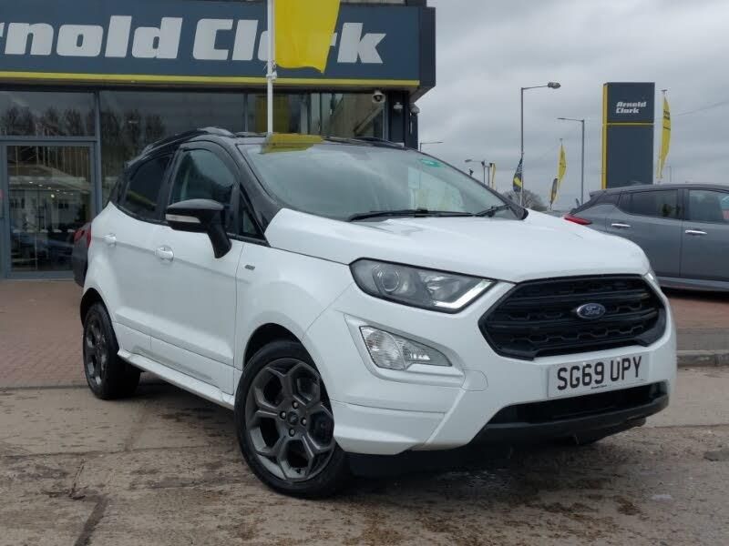 SYNC 3 nav system with DAB radio, 8" screen, voice control, emergency assistance, Apple car play/Android auto, 2x USB, Ford pass connect, Cruise control, Steering wheel mounted audio controls, Rear view camera pack - Ecosport, EATC - Electronic Auto Temperature control, Isofix system on outer rear seats, Leather steering wheel/gearshift/handbrake lever with red stitching, Stainless steel sports pedals, Reach + rake adjustable steering column, Partial leather upholstery, 'Quickclear' heated windscreen/heated washer jets, Black roof rails, Automatic headlights, ST-Line front grille, ST-Line body styling kit, Rain sensing front wipers, Power front and rear windows with global opening/closing, Power foldable door mirrors with puddle lights, Headlight levelling control, Electrically adjustable and heated door mirrors