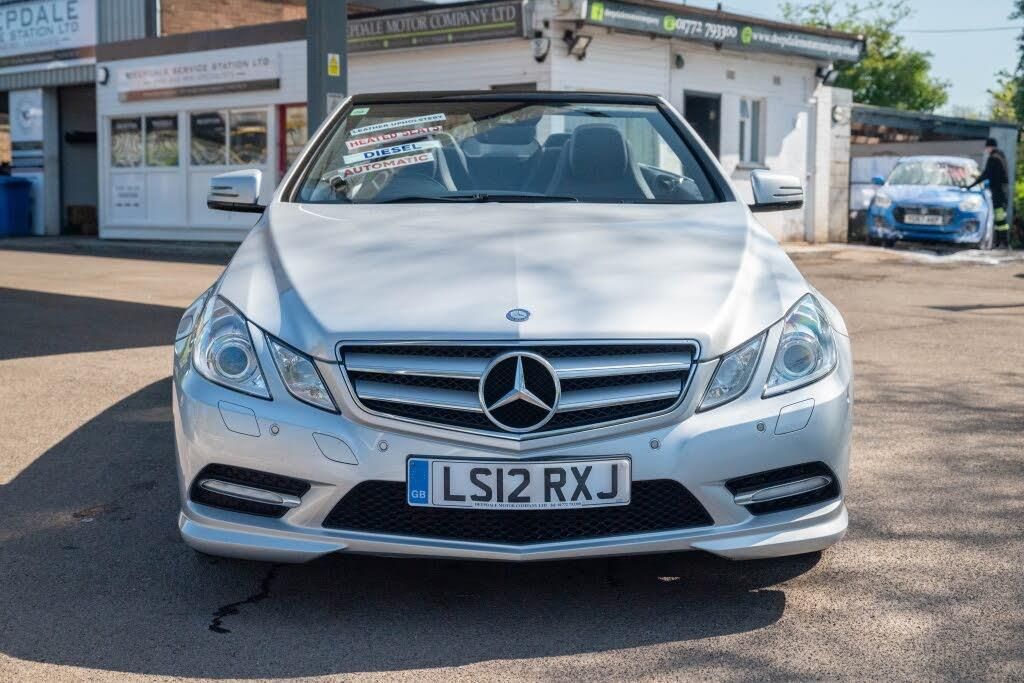 HERE WE HAVE AN ABSOLUTELY STUNNING IRIDIUM SILVER MERCEDES E220 CDI BLUE EFFICIENCY SPORT CABRIOLET. THIS STYLISH LUXURIOUS CAR COMES FULLY EQUIPPED WITH SAT NAV, HEADLAMP ASSIST, CRUISE CONTROL, PARKTRONIC, RAIN SENSING WIPERS, BLUETOOTH AND FULL SUMPTIOUS BLACK LEATHER HEATED SEATS PLUS LOTS MORE OF GENEROUS SPECIFICATION. IT HAS BEEN WELL MAINTAINED WITH GOOD SERVICE HISTORY. THE MAJORITY OF THIS HAS BEEN DONE AT MERCEDES. THIS MERCEDES E-CLASS WITH THE 2.1 LITRE ENGINE OFFERS A KEEN, RESPONSIVE DRIVE GUARANTEED TO MAKE YOUR DRIVING EXPERIENCE AN ENJOYABLE ONE. THIS EXAMPLE HAS ONLY COVERED 75000 MILES FROM NEW. A GREAT STYLISH LUXURIOUS CABRIOLET. THE PERFECT WAY TO ESCAPE THE PRESSURE OF EVERYDAY LIFE. THE WORLD IS YOUR OYSTER WITH THE ROOF DOWN AND THE WIND BLOWING IN YOUR HAIR ON A HOT SUMMER'S DAY. RECENTLY SERVICED AND LONG MOT WITH NO ADVISORIES. FULLY HPI CHECKED AND CLEAR. WE OFFER FULL DEALER FACILITIES INCLUDING PART EXCHANGE, FINANCE AT COMPETITIVE RATES, INDEPENDENT WORKSHOP, AND EXTENDED WARRANTIES ARE AVAILABLE. ENJOY THE PROTECTION OF PURCHASING FROM A MOTOR DEALERSHIP ESTABLISHED IN 1994.