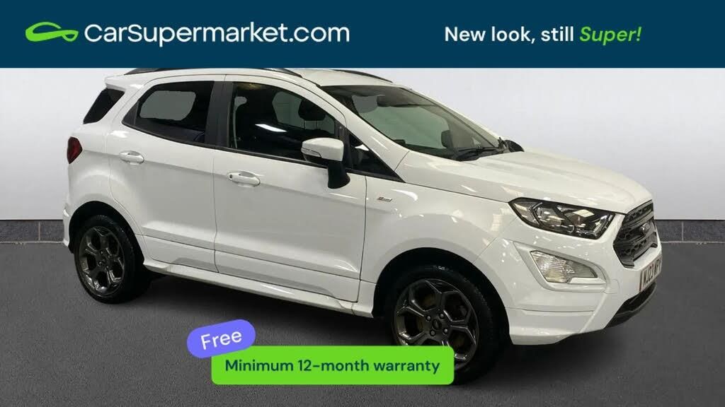 Cruise Control, Parking Sensors, Traffic Sign Recognition, Apple CarPlay, Android Auto, Privacy Glass, Keyless Entry;Ford Ecosport 1.0 EcoBoost 125 ST-Line [X Pack] (White) Supplied with a 159-point inspection and a minimum 12-month warranty. MOT valid until 20/02/2027. A practical Ford Ecosport featuring cruise control, parking sensors, traffic sign recognition, Apple CarPlay, Android Auto, privacy glass and keyless entry. Factory options include Frozen White paint, partial Sensico upholstery and X-Pack (£925).