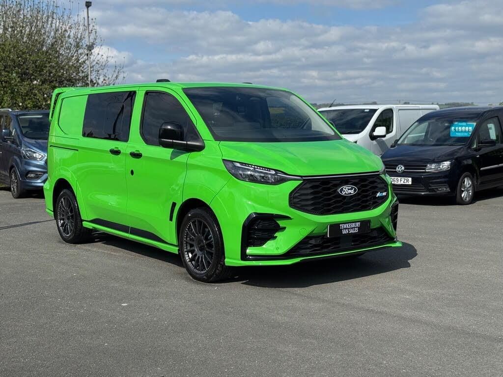 VIEWING BY APPOINTMENT, WE ARE FREQUENTLY OUT COLLECTING AND DELIVERING VEHICLES SO PLEASE CALL BEFORE TO MAKE SURE THIS VEHICLE IS STILL AVAILABLE* LIVE WALK ROUND VIDEOS CAN BE SENT BY REQUEST, HASSLE FREE DELIVERY TO YOUR DOOR PLEASE ENQUIRY FOR COST* BUY THIS CREWVAN TODAY FROM 274 A WEEK WITH A 9599 DEPOSIT, HPI CLEAR, 2 KEYS, Ford Custom MS-RT Short- wheelbase 5 seater crewvan 2.0 170ps auto finished in Stunning Yellow/Green paint, 5 seats and the all important Tailgate rear door, Only7000 miles from new, Comes with Full MS-RT factory bodykit, MS-RT half Leather interior and bespoke steering wheel, Factory 19 inch MS-RT alloy wheels, Smart view rear mirror, Reverse camera with front and rear sensors, Auto LED headlights, dual zone climate control with auto A/C, Wireless Apple/Android Carplay and phone charging, heated seats, heated front screen, Heated steering wheel, cruise control, electric windows, electric heated folding mirrors, DAB radio, bluetooth phone prep with music sync, Power sockets, multifunctional steering wheel, bulkhead, Load liner, Sold with the remainder of Fords 3 years warranty until 08/2028 for piece of mind, LOCATED JUST 5 MINUTES FROM JUNCTION 9 OF THE M5, OPEN 6 DAYS A WEEK, FAMILY RUN BUSINESS WITH OVER 35 YEARS EXPERIENCE, FINANCE AGREED THE SAME DAY, DELIVERY AVAILABLE, PART X WELCOME, please see our website for more vehicles, new stock arriving weekly