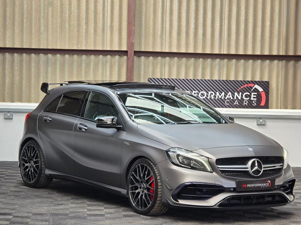 MERCEDES A45 AMG PREMIUM MODEL FINISHED IN RARE MAGNO SATIN PAINT FACTORY AERO GLOSS BLACK KIT PANORAMIC ROOF BUCKET SEATS COVERED 53.000 MILES STAGE 2 UPGRADES DONE BY EST WITH INVOICES AND DYNO 420BHP ON JUST 99 OCTAIN FUEL ECU AND TCU TUNE COBRA DOWNPIPE MASSIVE FACTORY SPECIFICATION FULL SERVICE HISTORY LAST SERVICED AT 49.700 MILES BY EST AMG DRIVERS PACK AMG PERFORMANCE EXHAUST AMG DYNAMIC PACK AMG RIDE CONTROL SPORTS SUSPENSION AMG NIGHT PACK RED AMG BRAKE CALIPERS ELECTRIC MEMORY HEATED SEATS REVERSE CAMERA HARMON SPEAKERS RED SEAT BELTS THIS IS A INCREDIBLE EXAMPLE PART EXCHANGE WELCOME FINANCE OPTIONS AVAILABLE-MAGNO PAINT+BIG SPEC+STAGE 2