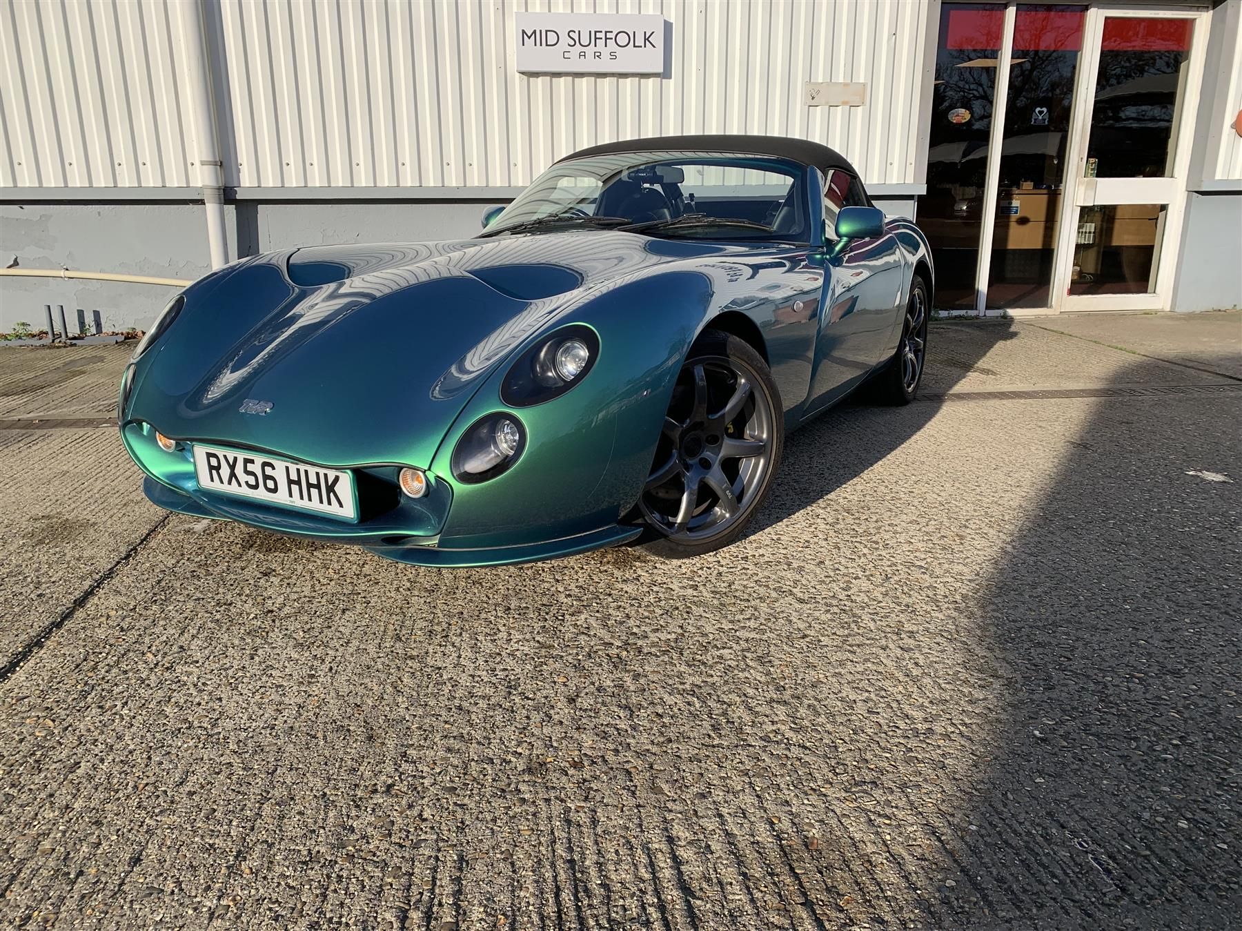 This is a rare MK3 Tuscan S Convertible in the fabulous Chameleon Green with Black Full Leather incorporating Carbon Style seat Inserts and stitched in Green. This car has Air Conditioning, Hydratrak, Halogen Lights, Carpeted Boot and was also fitted with a Tracker system. Although the registration document shows two owners they are both from the same family. The car has been extremely well cared for with the paintwork in excellent condition. This has been aided by the extensive fitting of Armourfend to the body and the fact that it has always been ‘garaged’. All servicing has been carried out by a TVR main dealer and TVR Specialist. A new MOT was issued in February of this year and the car will be supplied serviced with a 3 Month Warranty. Part exchanges welcome.