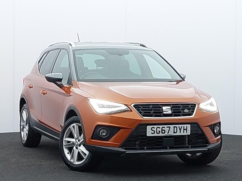 Front assistant collision mitigation, Rear parking sensor, Sports suspension, DAB Digital radio, Bluetooth interface for hands free and audio streaming, Steering wheel mounted audio controls, 6 speakers, Automatic activation of hazard warning lights, Automatic headlights, Coming/leaving home lighting function, Dark tinted rear windows, Electric front/rear windows with one touch/auto up/down, Electrically adjustable and heated door mirrors, Electrically folding wing mirrors, Front fog lights with static cornering function, LED daytime running lights, LED tail lights, Roof colour door mirrors, 3 rear height adjustable headrests, 60/40 split folding rear seat, Ambient interior lighting, Driver/front passenger seat height adjustment, Flat bottomed steering wheel, Height/reach adjustable steering column, Isofix attachments on outer rear seats, Leather steering wheel and gear knob, Nora cloth upholstery, Sports seats, Connectivity pack plus - Arona