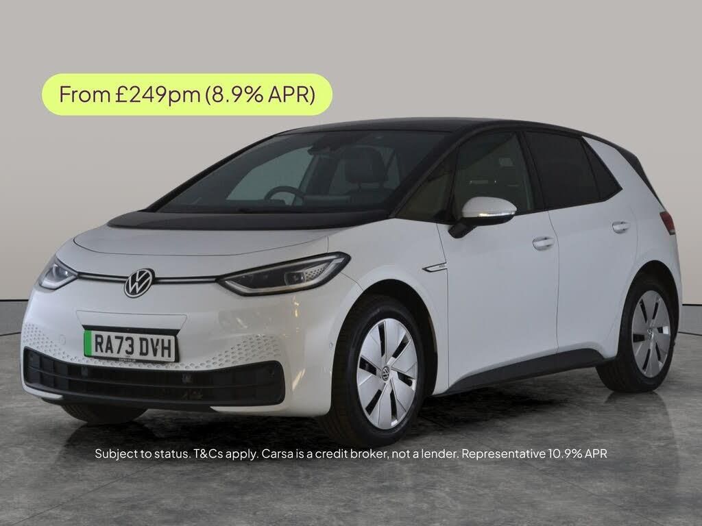 Experience the future of driving with this stylish white Volkswagen ID.3 Hatchback. Enjoy the airy ambience created by the panoramic sunroof, while keyless entry and electric seats add convenience and comfort to every journey. Stay effortlessly connected with Apple CarPlay and Bluetooth audio streaming. High-tech assists like Adaptive Cruise Control, Active Lane Assist, Blind Spot Assist, and an Assistance Pack make every drive safer and more enjoyable. Navigate with ease using the built-in Sat Nav and enjoy the smooth electric performance. 1 service recorded, last serviced on 16/12/2025 at 11,537 miles. MOT to 29/12/2026. Visit our website for service history, online valuation, full vehicle specification plus multiple images. This vehicle is VAT qualifying. Any feature/option specified here is from 3rd party data. We cannot guarantee the accuracy of any specification supplied by a 3rd party. We recommend that you physically check the specification of the vehicle on site prior to purchase. This information does not form part of the buying contract. Terms & Conditions apply. We have over 2,000 cars available from our 10 national branches, check our website to see all our stock. Our Trustpilot rating is 4.4/5 with over 9,000 reviews.