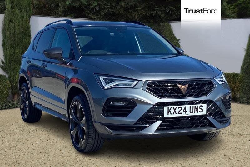 Cruise control system with speed limiter, Digital cockpit, Driving profile selection and conventional shock absorber, E-call, Electric tailgate with virtual pedal, Outside temperature gauge, Progressive power assisted steering, Rear view camera, Self parking functionality (includes front and rear parking sensors), Trip computer, wired and wireless full link smartphone integration, Wireless phone charger, Body colour bumpers with dark aluminium diffusor, Body coloured wheel arch surrounds, Dark tinted rear windows, Daytime running lights, Door mirrors with welcome CUPRA light silhouette, Dynamic headlight range control with self adjusting whilst driving, Electric adjustable/heated/folding door mirrors, Front and rear electric windows, Front grille frame in chrome, Full LED headlamps with lens and LED front fog lamps with cornering function, Gloss black door mirrors, Gloss black roof rails, Gloss black side mouldings, Gloss black side window trim, Illuminated aluminium front door sill, LED rear tail lights with dynamic indicators, Rear fog lights, Rear side wing doors, Rear spoiler, Rear wash/wipe, Specific CUPRA design front bumper, Standard rear exhaust tailpipes, Third brake light, 12V socket in front, 3 seat bench in 2nd row, 60/40 split folding rear seat, Aluminium pedals, Cupra steering wheel emblem, Dual zone climate control, Electric driver seat with memory function, Front and rear head restraints, Front centre armrest, Front seat back storage pockets, Grey roof lining, Heated front seats, Heated steering wheel, Height adjustable driver and passenger seat with lumbar adjustment, ISOFIX points in outer rear seats with top tether anchorage points, Leather sport bucket seats, Leather steering wheel and gear knob, Multicoloured ambient lighting with LED interior illumination, Pedal cluster, Rear armrest and easy back seat release mechanism from boot, Single front passenger seat, Sports steering wheel, Steering wheel mounted gearshift paddles, Storage compartment in roof console for sunglass, Storage compartment under driver's seat, 3x3 point rear seatbelts, ABS, Traction control system (TCS), Electronic stability control (ESC) and Electronic differential lock system (XDS), Airbags - Driver and front passenger airbag with deactivation, front side, two curtain and driver's knee airbags, Black brake callipers with CUPRA logo, Electric parking brake with auto hold function, Front and rear seatbelt reminder, Front assist with autonomous emergency braking, Hill hold control, Manual rear child locks, Single tone horn, Tiredness recognition system, Tyre pressure monitoring system