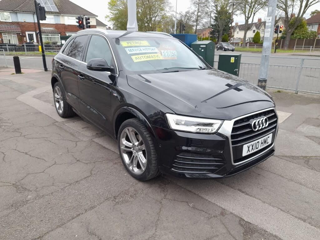 AUDI Q3 S LINE + TFSI QUATTRO S-A 2l PETROL AUTOMATIC IN Black, standing on 19" alloy wheels. Part black leather upholstery with grey stitching, isofix fitted in rear. Roof rails, tinted glass, A/C, central locking, central multimedia computer, climate control, cruise control, full airbags, radio, CD player, bluetooth, satnav, heated seats, electric windows and mirrors. This vehicle has had 2 former keepers and comes with service history. Road tax is £275 for the year and has an average of 40.4mpg. ALL OUR VEHICLES ARE SOLD WITH 12 MONTHS MOT AND A FULL SERVICE INCLUDED IN THE PRICE. Warranty is 3 months/3000 miles.