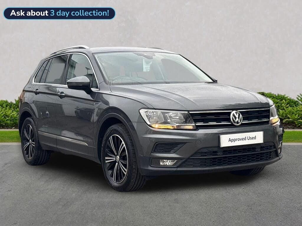 Volkswagen Tiguan 1.5 TSI EVO SE Navigation DSG (150 PS) 2018 Registration: AP68 TYH | Mileage: 71,428 | Indium Grey Metallic | Euro 6 A practical, spacious and well-equipped Volkswagen Tiguan SE Navigation finished in Indium Grey Metallic with a clean, modern interior. This 1.5 TSI EVO model offers strong efficiency, smooth DSG performance and a generous equipment list, making it an ideal family SUV or long-distance commuter. Key Details 1.5 TSI EVO petrol engine (150 PS) DSG automatic transmission 71,428 miles Indium Grey Metallic exterior Standard interior upholstery Euro 6 compliant Optional Equipment Comfort & Convenience Electric boot lid Winter Pack Heated front seats Heated windscreen washer jets Driver Assistance Active Info Display (digital instrument cluster) Standard Equipment Highlights Alloy Wheels & Exterior 18" Patagonia alloy wheels Anti-theft wheel bolts 235/55 R18 self-sealing tyres Variable boot floor (height adjustable and removable) Space saver spare wheel with tool kit Infotainment & Connectivity Composition Colour 8" touchscreen Composition Media 8" touchscreen Discover Navigation system Car-Net Guide & Inform (3-year subscription) Car-Net App-Connect with Media Control Bluetooth telephone and audio connectivity USB interface 8-speaker audio system Navigation data on SD card Driver Assistance & Safety Adaptive Cruise Control (ACC) Front Assist with autonomous emergency braking Lane Assist PreCrash preventative occupant protection Electrically adjustable, heated and foldable door mirrors Driver and passenger airbags with deactivation switch High Beam Assist Rain sensor Auto-dimming rear-view mirror Interior & Controls Leather-trimmed multifunction steering wheel with DSG paddle shift MDI interface ECO function Condition The vehicle drives smoothly with a responsive 1.5 TSI EVO engine and seamless DSG gear changes. The interior is clean and well-maintained, and the exterior presents well in Indium Grey Metallic with only light, age-appropriate marks. Volkswagen Approved Used Benefits (2026) Included as standard with an Approved Used Volkswagen: 1 Year Volkswagen Warranty 1 Year Roadside Assistance When financed with Solutions PCP from Volkswagen Financial Services: Up to 2 Services for only £99* 1 Year Volkswagen Warranty 1 Year Roadside Assistance £250 Deposit Contribution* (Applicable only to vehicles under 3 years old) *Servicing available on vehicles up to 8 years old. Covers two consecutive services. Warranty and Roadside Assistance valid on vehicles under 8 years old and under 100,000 miles at activation. Finance subject to status. Terms and conditions apply. Summary A well-specified and practical Tiguan SE Navigation featuring Discover Navigation, ACC, Lane Assist, Winter Pack, Patagonia alloys and a comprehensive infotainment package. A versatile, efficient and comfortable SUV ideal for families or long-distance driving, now supported by the reassurance of