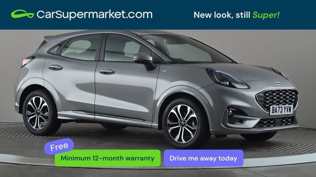 Lane Departure Warning, Traffic Sign Recognition, Quickclear Heated Windscreen, Sat Nav, Parking Sensors;BA73YVW - Ford Puma 1.0 EcoBoost Hybrid mHEV ST-Line DCT (Silver) Supplied with a 159-point inspection and a minimum 12-month warranty. Last serviced on 20/11/2025. MOT due 27/11/2026. A sporty compact SUV offering smooth automatic performance with mild hybrid efficiency and modern features. Includes lane departure warning, traffic sign recognition, heated windscreen and satellite navigation. Finished in Solar Silver with upgraded interior trim (£525).