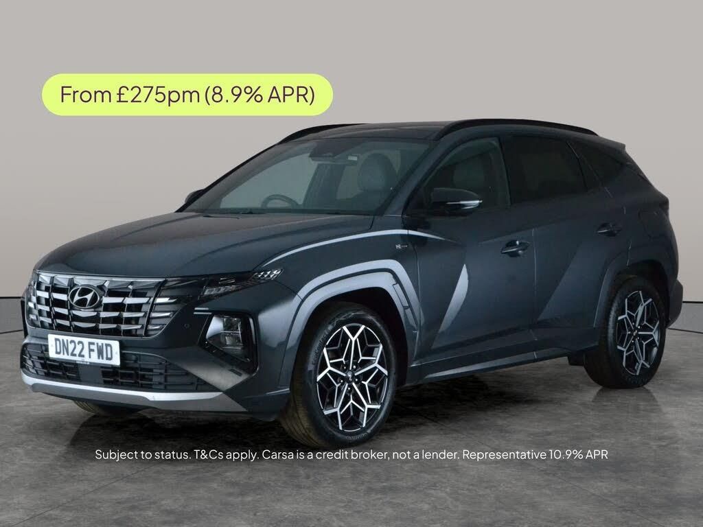 Experience the Hyundai Tucson N Line S a stylish grey SUV packed with premium features. Enjoy the expansive panoramic roof and sunroof for a light-filled drive, while heated seats and a heated steering wheel keep you comfortable. Stay connected with Apple CarPlay and wireless phone charging. Drive with confidence thanks to the reversing camera, blind spot assist, lane departure warning, and keyless entry. LED headlights add a modern touch, and built-in sat nav and cruise control make every journey smooth. 4 services recorded, last serviced on 22/04/2026 at 34,443 miles. MOT to 28/04/2026. Visit our website for service history, online valuation, full vehicle specification plus multiple images. This vehicle is VAT qualifying. Any feature/option specified here is from 3rd party data. We cannot guarantee the accuracy of any specification supplied by a 3rd party. We recommend that you physically check the specification of the vehicle on site prior to purchase. This information does not form part of the buying contract. Terms & Conditions apply. We have over 2,000 cars available from our 10 national branches, check our website to see all our stock. Our Trustpilot rating is 4.4/5 with over 9,000 reviews.