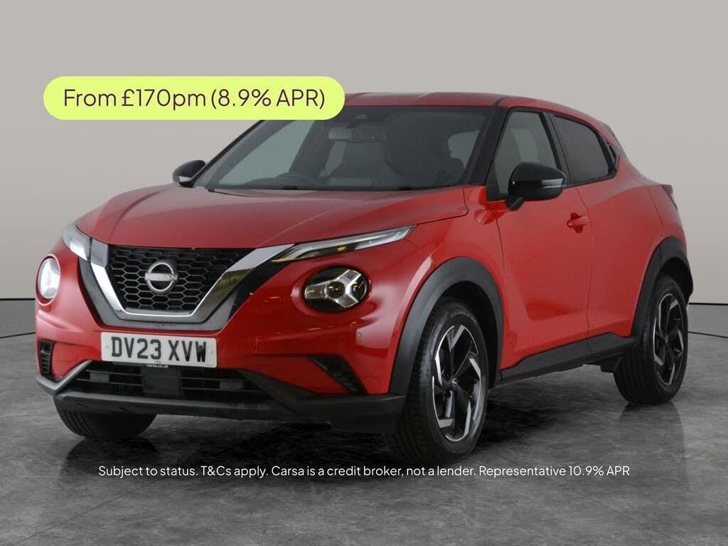 Turn heads in this striking red Nissan Juke SUV, packed with modern features for an elevated driving experience. Enjoy seamless connectivity with Apple CarPlay, built-in Wifi, Bluetooth audio streaming, and easy navigation with Sat Nav. Drive in confidence thanks to LED headlights, a reversing camera, front and rear parking sensors, and intelligent safety systems including Lane Intervention and Traffic Sign Recognition. Paddle shift and versatile driving modes add a sporty touch, while half leather seats ensure comfort on every journey. 3 services recorded, last serviced on 21/04/2026 at 30,005 miles. MOT to 30/03/2027. Visit our website for service history, online valuation, full vehicle specification plus multiple images. This vehicle is VAT qualifying. Any feature/option specified here is from 3rd party data. We cannot guarantee the accuracy of any specification supplied by a 3rd party. We recommend that you physically check the specification of the vehicle on site prior to purchase. This information does not form part of the buying contract. Terms & Conditions apply. We have over 2,000 cars available from our 10 national branches, check our website to see all our stock. Our Trustpilot rating is 4.4/5 with over 9,000 reviews.