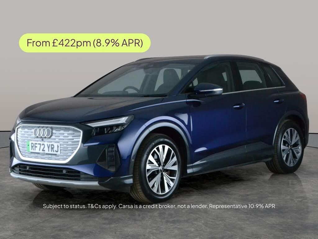 Experience the future of driving with this stylish blue Audi Q4 E-tron Sport. Enhanced with the Comfort and Sound Package, youll enjoy premium heated seats, an upgraded sound system, and immersive LED headlights. Stay effortlessly connected with MMI Navigation Plus and Bluetooth, while advanced features like lane departure warning, cruise control, and traffic sign recognition add confidence to every journey. Enjoy smooth electric power with versatile driving modes and automatic climate control for supreme comfort. 1 service recorded, last serviced on 27/01/2025 at 7,571 miles. MOT to 18/12/2026. Visit our website for service history, online valuation, full vehicle specification plus multiple images. Certain features listed may be available via subscription packages at extra costs, please consult with Audi for details. This vehicle is VAT qualifying. Any feature/option specified here is from 3rd party data. We cannot guarantee the accuracy of any specification supplied by a 3rd party. We recommend that you physically check the specification of the vehicle on site prior to purchase. This information does not form part of the buying contract. Terms & Conditions apply. We have over 2,000 cars available from our 10 national branches, check our website to see all our stock. Our Trustpilot rating is 4.4/5 with over 9,000 reviews.