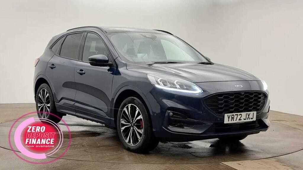 10-Way Power Adjustable Drivers Seat, 12V Power Point in Floor Console, 12v Power Point in Cargo Area, 12v Socket - Voltage Regulator, 19in Alloy Wheels - 5x2 Spoke - High Gloss - Machined, 2nd Row Sliding Seats, 8-Way Manual Passenger Seat including Lumbar Support and Height Adjust, ABS - Anti-Lock Braking System with Enhanced Electronic Stability Control - ESC with Traction Control - Emergency Brake Assist - EBA - Hill Start Assist - Trailer Sway Control, Acoustic Vehicle Alert System - AVAS, Air Conditioning - Electronic Automatic Temperature Control - EATC, Airbag - Driver and Front Passenger Side, Airbag - Front Passenger Deactivation Switch, Airbags - Driver and Front Passenger, Airbags - Front and Rear Side Curtain, Aluminium - Finish Front Scuff Plates with ST-Line Script, Aluminium Foot Pedals - ST-Line Design, Ambient Lighting, Auto Dimming Rear View Mirror, Auto Wipers, Automatic Door Relocking, Automatic Headlights with Auto High-Low Beam, Black Roof Rails, Centre Console with Electronic Parking Brake, Cruise Control with Speed Limiter, Driver and Passengers Sun Visor with Illumination, Dual Exhaust Tailpipes with Unique Brushed Stainless Steel Finish, EPAS - Electric Power Assisted Steering, Electric Childproof Locks on Rear Doors, Electric Parking Brake with Auto Hold, Electrical Charging Point in Second Row, Engine Immobiliser - SecuriLock, Exterior Door Handles - Body Coloured, Ford Easy Fuel System, Ford Keyfree System - Keyless Entry with Ford Power Starter Button, Ford SYNC3 DAB Navigation System, Front Lower Grille - Ebony Black Mesh, Front Seats - 2-Way Manual Height Adjust Passive Head Restraints, Front Seats - Drivers and Passengers Seatback Map Pockets, Front Upper Grille - Carbon Black Honeycombe Mesh and High-Gloss Black Surround, Front Windows - Laminated Glass, Front and Rear Bumper - Sporty Body Colour with Rear Ebony High-Gloss Insert, Front and Rear Floor Mats with Red Stitching, Front and Rear Parking Sensors, Full Digital 12.3in Instrument Cluster, Full LED Headlamps, GEO Awareness - Providing Details of ULEZ Within the Satellite Navigation, Gearshift - Automatic - Electronic Rotary Gearshift Dial, Glovebox Lights, Handsfree Power Tailgate, Headlights - Automatic Follow Me Home Lighting, Headlights - Levelling System - Manual, Headlights - Unique Bending, Headliner - Sports Dark, Heated Driver and Passenger Seats, Heated Rear Seats, Heated Steering Wheel, Heated and Power Folding Door Mirrors with Puddle Lights, High-Mounted Brake Light, Kuga Badge, LED Daytime Running Lights, LED Fog Lights - Front, Lane Keeping Aid with Lane Departure Warning, Large Rear Spoiler, Load Compartment - Lights, Load Compartment - Tie Down Hooks, Load Compartment Carpet, Locking Wheel Nuts, Lower Bodyside Moulding - Body Colour, Lower Door Frame Beltline - Black, Mini Overhead Console with Sunglasses Holder Bin, MyKey, Power Door Deadlocks - Double Locking, Power Door Locks, Power Opening Panoramic Roof, Pre-Collision Assist with Autonomous Emergency Braking, Quickclear Heated Windscreen, Rear Duct on B-Pillar, Rear Lights - LED, Rear Privacy Glass, Rear Seat - 60-40 Split Folding Seats, Rear Seat Centre Head Restraint, Rear Seats - 2-Way Head Restraint Up-Down, Rear Seats - Folding Centre Armrest with Integrated Cup Holder, Rear Seats - Sliding Seat Adjust Tracks - Fore-Aft, Rear View Camera, Red Brake Calipers, Remote Tailgate Release, Removable Package Tray, Rocker Panel Mouldings - Body Colour - ST-Line Design, ST-Line Badge on Left and Right Side Wings, ST-Line Bodystyling Kit, ST-Line Front and Rear Bumper Moulding - Body Colour, Seat Belt - Drivers - Front Passenger and Rear Seat Belt Reminder Alert, Seat Belts - Front 3-Point Seatbelts with Load Limiter, Seat Belts - Front Height Adjustable, Seat Belts - Rear Retractable Rear Belt - 3-Point All Positions, Seats - ISOFIX Mounting Provision for Child Seats - Outer Seats Only, Selectable Drive Modes, Single Rear Fog Light, Sports Seats, Standard Home Charging Cable - 3-Pin Domestic Socket 230V, Steering Column - Locking Electric, Steering Column - Rake and Reach Adjustment, Steering Wheel - ST-Line Sports-Style Perforated Sensico-Trimmed with Red Stitching, Suspension - Sports, Tailgate Badge - PHEV - Plug-In-Hybrid, Tailgate Handle - Body Colour, Tether Anchorage - Two Rear Seat Top Tether Anchorage Restraints, Thatcham Category 1 Perimeter and Volume Sensing Alarm, Tow Hooks - Front and Rear, Trip Computer, Tyre Inflation Kit, Tyre Pressure Monitoring System, Upper Door Frame Beltline - Black, Windows - Power Front and Rear with Global Closing, Winter Pack, Wiper - Intermittent Rear Window Wiper, Wrong Way Alert, eCall, Blazer Blue, Driver Assistance Pack, Retractable Towbar with Electrical Release Function, Technology Pack, Wireless Charging