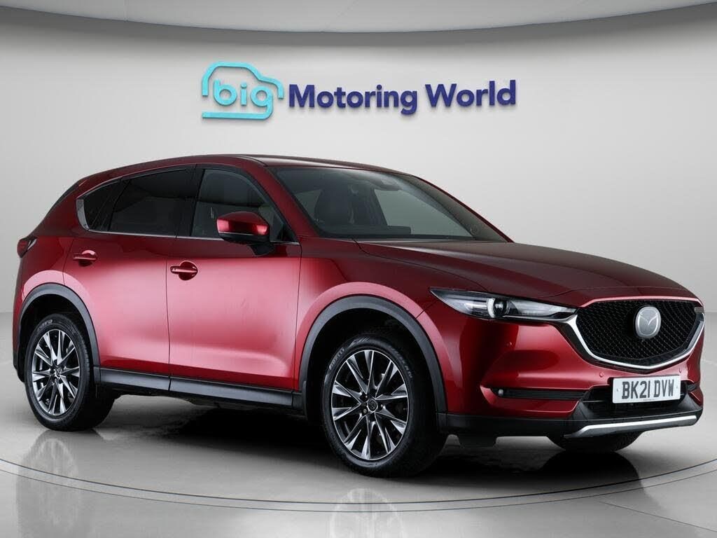 Head up Display,19'' Alloy whee-Our Mazda CX-5 is finished in Red. Specification includes a range of fantastic features including Head up Display, 19'' Alloy wheels, Leather Seats, Apple CarPlay, Premium Sound System, Electric Panoramic Roof, Privacy Glass, Heated Seats, Surround View Cameras, Heated Steering Wheel Specification information is supplied by CAPHPI and may vary to the actual car. This data does not form any part of a buying contact. Please check specification prior to purchase in-store. The MOT is valid until April 2027, visit bigmotoringworld.co.uk for more photos, a 360 tour, service history and a free HPI report.Were BIG on peace of mind and this Red Mazda CX-5 has completed our comprehensive 200 point inspection and passed all checks. Its ready for you to drive away with immediate collection in-store. We include a 90-day warranty as standard plus an option to extend for up to 3 years.Reserve this car exclusively for you, safely and securely at bigmotoringworld.co.uk, with a fully refundable £99 deposit. Test drive before you buy, with no commitment, no hassle and a completely haggle free experience. Still searching and want to see thousands more cars? We are BIG on choice with over 8000 cars to choose from.Visit our award winning web site bigmotoringworld.co.uk.Were Big Motoring World and were BIG on what matters to you.