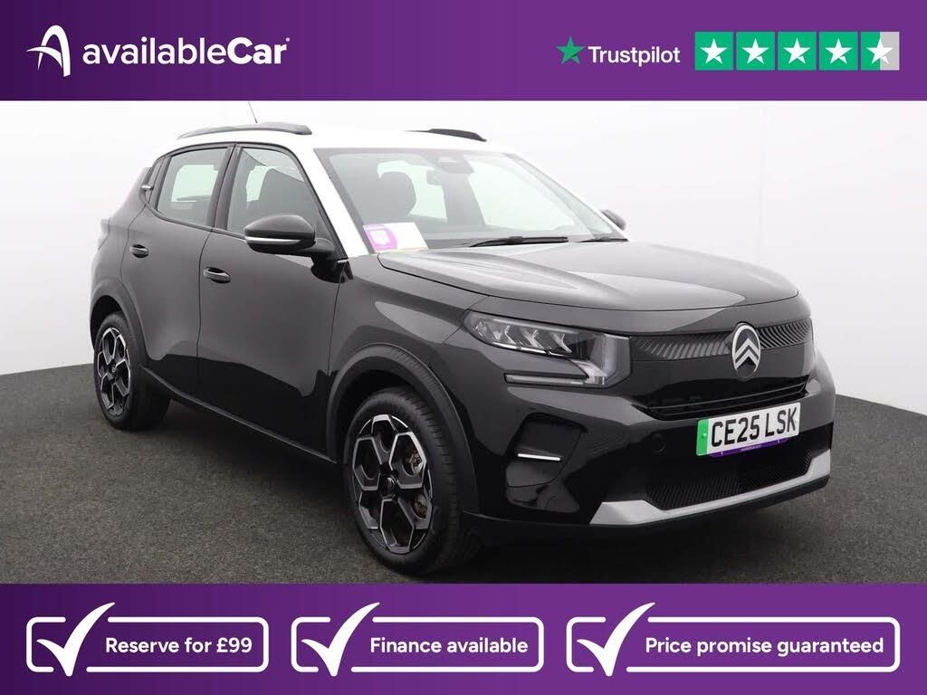 1 Litre Bottle Storage in Front and Rear Door Pockets,1 USB-C Connection - Data and Charging - On Dashboard,1 USB-C Fast Charge in Row 2,1 USB-C Fast Charge on High Console,12V Socket On Console,17in Alloy Wheels - Atacamite - Diamond Cut Bi-Tone,2-3 - 1-3 Split Folding Rear Bench,7.4kW Single-Phase Onboard Charger,ABS - Anti-Lock Braking System,AVAS - Approaching Vehicle Alerting System,Active Lane Departure Warning System,Air Vents - 2 Side and 2 Central on Dashboard,Airbags - Driver,Anchoring Rings on Boot - x4,Automatic Activation of Hazard Warning Lights in Case of Severe Deceleration,Automatic Door and Boot Locking when in Motion,Automatic Headlights,Bag Support Hook in Boot,Black Roof Bars,Black Wheel Arch Extensions,Body Colour Front and Rear Bumpers,Boot Light,Central Locking - with Deadlocks,Central Storage with 2 Cup Holders,Child Locking Functionality on Rear Doors,Citroen Advanced Comfort Suspension with Progressive Hydraulic Cushions,Citroen Connect Box Emergency and Assistance System,Citroen Head-Up Display - Key Driver Information Projected on to Upper Dashboard,Colour Clip on Front Bumper and C-Pillar,Connected Anti-Theft Alarm - Volumetric and Perimetric with Tilt Sensor,Connected Services,Cruise Control with Speed Limiter,DAB Radio - 6 Loudspeakers - 10.25in Capacitive Touchscreen - Wireless Mirror Screen with Apple CarPlay and Android Auto - Bluetooth,Day-Night Switchable Interior Rear View Mirror,Door Mirrors - Electrically Heated and Folding,Driver and Front Seatbelts with Pyrotechnic Pretensioners and Force Limiters,Drivers Seat Height Adjustment,Drivers and Passengers Sunvisor with Courtesy Mirror,ESP - Electronic Stability Programme with Anti-Skid System,Electric Front Power Windows - Driver Auto Up and Down - Passenger Auto Down,Electric Parking Brake,Electric Power Steering,Fast Charging DC 100kW,Front Head Restraint with Height Adjustment,Front Passenger Airbag - Can be Deactivated,Front Seats Adjustable with Forward-Back Slide and Adjustable Backrest,Front Side Airbags and Front and Rear Curtain Airbags,Front and Rear Skid Plates in Grey,Gloss Black B and C Pillar Finish,Gloss Black Exterior Door Handles,Gloss Black Rear View Mirror Caps,Glove Box - Closed,Heated Rear Window,Height and Reach Adjustable Steering Wheel,High Console with Armrest and Closed Storage,Hill Start Assist,ISOFIX Mountings on Outer Rear Seats with Top Tether and Labels Indicating Fixing Points,Interior Door Handles - Chrome Effect,LED Daytime Running Lights,LED Front Lighting Panel with Map Reading Lights,LED Headlights with Electric Levelling,Manual Air Conditioning,Map Pockets in Back of Driver and Front Passenger Seats with Additional Pocket for Smartphone Storage,Mode 3 Charging Cable - Monophase 7 kW - 5 Metres,Monotone Horn,Multifunction Trip Computer,Outside Temperature Indicator,Padded Fabric Armrests in Front and Rear Doors with Labels,Parcel Shelf,Parking Sensors - Rear,Rear Spoiler,Rear View Mirror with Integrated Turn Indicators,Remote Central Locking with 1 Plip Key and 1 Non-Plip Key,Safety Pack,Seatbelt Unfastened on the Move Audible and Visual Alert for Front and Rear Seats,Steering Wheel - Leather Effect with Gloss Black and Chrome Elements and Integrated Audio Telephone Cruise Control and Speed Limit Controls,Three Rear Seats with Head Restraints,Three Rear Three-Point Seatbelt - Outer Seats have Pretensioners and Force Limiters,Tinted Side Windows,Tyre Pressure Monitoring System,Ultra Blue Decor on Dashboard,Ultra Blue Decor on Front Doors,Visibility Pack,e-Toggle Gear Selector