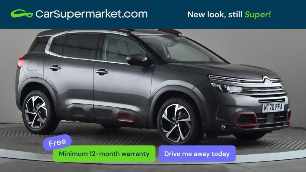 12.3" customisable TFT instrument display,Active blind spot monitoring system,Active lane departure warning system,Bluetooth telephone facility,Central 8" capacitive touch screen,Citroen connect box emergency assist system,Citroen connect Nav with connect box,Coffee Break Alert,Eco+ mode,Electric power steering,Exterior temperature indicator with ice warning,Gear efficiency indicator,Mirror screen with Apple CarPlay and Android auto,Multi function trip computer,Programmable cruise control and speed limiter,Rear parking sensors,Speed limit recognition and recommendation,Traffic sign recognition and recommendation,Suspension with Progressive Hydraulic Cushions,2 USB sockets,Auxiliary input socket,DAB (Digital Audio Broadcasting), AM/FM and MP3 compatible radio with two tweeters and four speakers,Voice recognition for radio, navigation and telephony features,3D effect LED rear lights,Acoustic laminated windscreen with rain and brightness sensors,Airbump panels with colour insert on lower portion of the doors,Auto dimming electrochrome rear view mirror,Automatic hazard light activation upon heavy brake application,Automatic headlight activation via windscreen mounted sensors,Automatic triggered rear windscreen wiper in reverse gear,Automatic windscreen wipers,Body colour door handles,C5 Aircross monogram on boot rear,Citroen logo and monogram on rear,Dark tinted rear windows and rear windscreen,Electric, heated and folding door mirrors with integrated LED indicator and kerb puddle light,Front fog lights with cornering function,Front windscreen wiper with magic wash cleaning system,Gloss black finish on A and B pillar and aerodynamic trim,Guide me home headlight function,Halogen headlights,Halogen rear fog lights,Halogen rear number plate lights,Headlights left on audible warning,Heated rear windscreen with integrated antenna,High level LED centre brake light,LED daytime running lights,LED front indicators,Longitudinal roof bars,Matte black lower rear skirt,Matte black rear bumper facia,Matte black side sill with anodised silver colour touch,Matte black upper and lower grille,Matte black wheel arch extensions,One touch electric front/rear windows with pinch protection,Painted front bumper,Painted rear bumper,Roof coloured rear spoiler,Satin chrome C signature,Satin chrome window surround,Twin exhaust effect trim,12V socket in boot,12V socket in cabin,2 cup holders in the front and rear centre console,2 Position boot floor,2 way lumbar adjustment for driver,2x Rear coat hooks,3 Independent full size rear seats with adjustable recline angle,3x Grab handles retractable with damping,Advanced comfort front and rear seats,Air recirculation when reverse gear is engaged,Anti odour and pollen filter,Central front armrest with butterfly wing opening and illuminated storage compartment,Dashboard closed glove box with lid and illumination,Dimmable white mood lighting,Dual zone automatic climate control,Fixing rings 4 in load compartment,Front and rear LED welcome/LED rear reading lights,Front door pockets store up to 1.5L bottle and A4 note pad,Front interior light with 2 reading spotlights and rear interior light with timer,Front seat back map pockets,Height and reach adjustable leather steering wheel with 2 control zones,Hinged rear parcel shelf,Isofix child seat preparation for front passenger seat,Leather effect interior door handles,Leather steering wheel with satin chrome inserts and radio controls,Manual driver seat adjustment (height, fore/aft and backrest angle),Manual passenger seat adjustment (height, fore/aft and backrest angle),Multi function steering wheel,Open central storage area below touch screen,Open central storage compartment,Open storage area next to gear selector,Rear centre console ventilation system,Rear door pockets store up to 0.5L bottle,Rear passenger air vents,Satin chrome digital instrument panel and touchscreen trim,Satin chrome gear lever,Satin chrome interior door handles,Seatbelt not fastened audible and visual alert for front seats,Seatbelt unfastened on the move audible and visual alert for front and rear seats,Smooth opening flocked glove box with lighting,City camera pack with front parking sensors - C5 Aircross,Safety plus pack - C5 Aircross,2x Isofix child seat fitting on outer rear seats,3x Rear three point retractable seatbelts with pretensioners and force limiters in the outer rear seats,ABS/EBD,Adaptive driver and front passenger airbags with passenger airbag deactivation function,Collision risk alert,Driver and front passenger side airbags,DSC (Dynamic Stability Control) and ASR (Electronic Anti-skid System),Electric child locking functionality on rear windows and doors,Electronic parking brake,ESP including traction control and stability programme,Front and rear curtain airbags,Front optimised safety headrests and 3 x rear retractable headrests with height adjustable,Front three point retractable seatbelts height adjustable with pre tensioners and force limiters