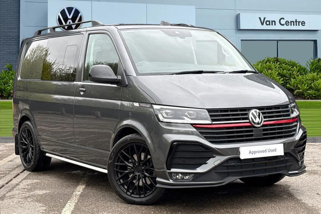 Solid paint,Dual passenger seat in cab,Solid - Pure grey,Nappa leather/alcantara- Titanium/Palladium black with red contrast stitching,Front electric windows,Heat insulating windows in cab,Heated laminated windshield,Windshield wiper with intermittent control with rain sensor,Eibach 30mm lowering springs,Body colour bumpers,Body coloured door handles,Enhanced front bumper including lower front diffuser,Illuminated chrome side bars,Rear tailgate spoiler,Sportline front wing and rear tailgate badging,Automatic headlight control,leaving home and manual coming home feature,Front fog lamps with cornering light,High beam assist,LED headlights with LED daytime running lights and LED tail lights,Automatic post collision braking system,Electronic stability control,ABS,ASR with deactivation button,electronic differnetial lock,hill start assist and brake assist system,Start/stop system with regenerative breaking,Adaptive cruise control,Cross wind assist,Electromechanical steering,Front assist including city emergency braking system,Rear view camera,Auto dimming interior rear view mirror,Gloss black wing mirrors,Power folding door mirrors,Driver and front passenger airbag with front passenger airbag deactivation,Single tone horn,Power latching for passenger side sliding door,Power latching tailgate without windows,Driver alert system,Front and rear parking sensors,Multi function display plus with black and white display,Digital cockpit,Dimmable dashboard ilumination,eCall emergency system,Diesel particulate filter,Additional 12V socket,Dashboard upper in Titanium Black,dashboard lower in Palladium and floor covering in Titanium Black,Armrests for both front seats,Heated driver and front passenger seats,4 speakers with 2 tweeters and 2 woofers,Digital radio reception (DAB+),Discover Media navigation system with 8.0" touch-screen including Streaming and Internet,Volkswagen app connect,Dust/pollen filter,Electronically controlled front air conditioning system and second heating system in passenger compartment,12V socket,Carpet floor covering in cab,Comfort dashboard,Dash panel with open stowage compartments,drink holders and lockable glovebox,Entry handle on A-pillar on drivers and front passengers side,Folding grab handles on roof frame,Gloss black inserts in dashboard,Glove compartment with illumination,Half height side trim panels and roof trim panels made of hardboard,Heavy duty tool kit and jack,High partition,Interior styling and badging,Leather trimmed multi-function steering wheel with height and longitudinal adjustment,Nappa leather/alcantara upholstery with red contrast stitching,One waste bin in door storage compartment,Sportline carpet mats,Sun visors with mirror and airbag label on front passenger sun visor,Interior lighting with LED technology in load compartment,LED Interior lighting with two reading lights in the roof console,Reinforced Folding lashing rings for load restraint system,2 remote control folding keys,Anti theft alarm system with interior monitoring in cab,backup horn and towing protection,Engine immobiliser,Lockable wheel bolts,18" Sportline Gloss black alloy wheels,Tyre mobility kit in lieu of spare wheel with 12 volt compressor and tyre sealant