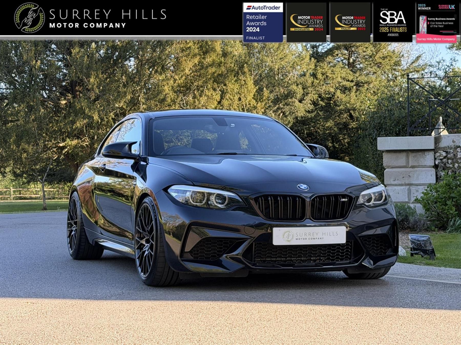 Apple CarPlay,19in M Y-Spoke Alloy Wheels Style 788M with Mixed Tyres in Black,Sun Protection Glazing,Black Sapphire,Dakota Leather - Black with Blue Highlight and Perforated Design,12V Power Socket - Centre Console,12V Power Socket - Passenger Footwell,19in M Y-Spoke Alloy Wheels Style 788M with Mixed Tyres,Access to BMW Connected Plus (12 Month Subscription From New),Active M Differential,Air Conditioning - Automatic - Dual Zone Control,Airbags,Airblades - Cerium Grey,Alarm System - Thatcham 1 with Remote Control and Engine Immobiliser,Ambient Lighting - Switchable,Armrest - Front with Sliding Adjustment,Automatically Dimming Rear View Mirror,BMW ConnectedDrive Online Services,BMW ConnectedDrive Services,BMW Emergency Call,BMW Mobility System,BMW Professional Radio with Single CD Player - with MP3 Playback Compatibility,BMW TeleServices,Battery Age Recognition Function,Battery Safety Cut Off,Black Optic Display Instrument Cluster with M Specific Display - Red Needles and M2 Competition Welcome Screen,Bluetooth Hands-Free Facility with USB Audio Interface and Audio Streaming,Brake Pad Wear Indicator - Front and Rear,Bumper System - Front and Rear,Central Locking Switch - Doors - Fuel Filler Cap - Luggage Compartment,Check Control Warning System for Monitoring of Lights and Door-Luggage Compartment Open Warning,Child Seat ISOFIX Attachment for the Two Outer Rear Seats,Coat Hooks - Integrated into Rear of B Pillar,Condition Based Service,Crash Sensor,Cruise Control with Brake Function,Cup Holders x2 with Sliding Cover and Inlay Mat,DAB Digital Radio,DSC - Dynamic Stability Control Plus,Darkened Tail Lights with LED Light Bars,Daytime Driving Lights,Direction Indicator - Side Repeaters - Integrated in Exterior Mirrors,Direction Indicator Lights - Clear Lenses,Door Sill Finishers - M2 Competition Designation,Drive Performance Control - ECO PRO - Comfort - Sport - Sport Plus,Dynamic Brake Lights,ECO PRO Mode,EPS - Electric Power Steering,Electric Windows - Front and Rear with Open-Close Fingertip Control - Anti-Trap Facility and Comfort Closing Function,Engine Cover with BMW Roundel and TwinPower Turbo Designation,Exhaust Tailpipes - Twin Dual - Dark Chrome with Bevelled Design,Extended Lighting,Extended Storage,Exterior Parts in Body Colour,Exterior Trim - High-Gloss Shadowline,First Aid Kit and Warning Triangle,Floor Mats - Velour,Full Black Panel Display,Glove Box,Handbrake Lever and Gear Lever Knob in Leather,Headlining - Anthracite,Heat Protection Glazing with Green Tint,High Level Third Brake Light,High-Gloss Shadowline with Extended Contents,Instrument Cluster,Interior Comfort Package,Interior Lighting - Front Centre Over Interior Mirror and Rear Centre,Interior Trim - Carbon Fibre with Black High Gloss Finishers,Kidney Grille - Unique Design in High-Gloss Black with M Double Rod Vertical Slats and M2 Badging,LED Headlights,Lashing Eyes in Luggage Compartment at Sill x2,Launch Control,Lights-On Warning by Audio Warning Signal When Ignition is Switched Off,Locking Wheel Bolts,Luggage Compartment - Light,Luggage Compartment Access via BMW Roundel,Lumbar Support - Driver and Front Passenger,M Drive Manager,M Dynamic Mode,M Leather Steering Wheel - Three-Spoke Design with Three-Colour M Stitching and M1-M2 Programmable Buttons,M Logo Designation in Unique Dark Chrome on Left and Right Front Wings,M Rear Lip Spoiler,M Rear Spoiler,M Seat Belts,M Servotronic,M Side Strakes in High-gloss Black with M2 Designation,M Specific Braking System,M Specific Exterior Mirrors - Electrically Adjustable and Heated,M Specific Sport Suspension - Unique to M2,M Specific Start/Stop Button Finished in Red,M Sport Seat - Front,M-Specific Seats for Driver and Passenger,M2 Competition Model Designation on Boot,M2 Specific Aerodynamic Bodystyling with Unique Front Bumper-Rear Bumper and Side Skirts,Media Package - BMW Professional,Model Designation,Multifunction Controls for Steering Wheel,Navigation System - BMW Professional Multimedia,OBC - On-Board Computer,Oil Temperature Display via On-Board Computer Shown in Central Screen in Instrument Cluster,Online Entertainment,Optimum Shift Indicator,PDC - Park Distance Control - Front and Rear,Personal Profile - Extended,Rain Sensor with Automatic Headlight Activation,Real Time Traffic Information,Rear Fog Light,Rear Seat Headrests - Folding - Two,Rear Window Aerial,Remote Control Including Integrated Key - 2,Remote Control with Integrated Key with Insert in Blue,Remote Services,Reversing Light in Rear Light Clusters,Seat Belt Security Check for Driver and Front Passenger,Seat Heating for Driver and Front Passenger,Seats - 60-40 Split Folding Rear,Shark Fin Aerial,Side Armrests - Front and Rear Integrated into Door Trim,Side Impact Protection,Start-Stop Button with Comfort Go Keyless Engine Start and Auto Start-Stop Deactivation Button,Steering Wheel - Gearshift Paddles,Steering-Wheel Column Adjustment - Manual,Storage Compartment - Rear Centre Console and in Door Trim - Front,Sun Visors with Vanity Mirrors and Ticket Holder,TPMS - Tyre Pressure Monitoring System,Three-Point Seat Belts - All Seats,Twin Horns,Visible VIN,Welcome Lighting - LED