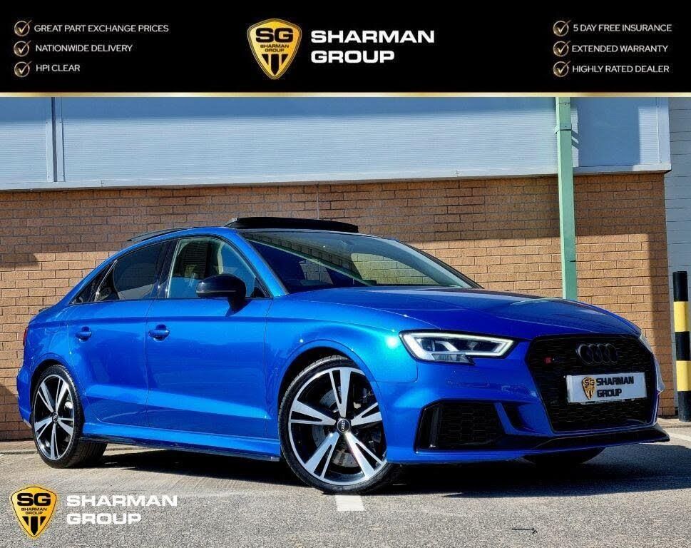 Incredible RS3 On The Market. Finished In Ara Blue With Fine Nappa Leather Seats, Full Service History And An Outstanding Spec Inc: Maxton Body Kit, Forge Intercooler Kit, Panoramic Glass Roof, RS Sport Exhaust, Audi Virtual Cockpit, Black Styling Package, Pre-Sense Basic, Rear Side Airbags, 19in Alloy Wheels 5-Arm Blade Design Glossy Anthracite Black Diamond Cut Finish, MMI Navigation Plus including MMI Touch, Audi Smartphone Interface, RS Sports Suspension, Inlays Carbon, Heated Front Seats, Interior Light Package, LED Interior Light Package, Light and Rain Sensor, Auto-Dimming Rear-View Mirror, Bluetooth Interface, Cruise Control, DAB Digital Radio, Dual-Zone Electronic Climate Control, ESC Electronic Stabilisation Control inc ABS ASR and EDL, Headlights Washers, Privacy Glass, Progressive Steering, Storage Package, Tyre Pressure Warning Light And Much Much More You Really Can Do Everything You Need Seamlessly In This Spectacular Car. Every Effort Has Been Made To Ensure The Accuracy Of The Above Information, But Errors May Occur, Please Check With The Sales Executive Upon Enquiry. Part Exchanges Considered. All Major Credit & Debit Cards Accepted. We Offer Various Dealer Facilities Including Servicing, MOTS, Valeting, Detailing, Protective Coatings, Comprehensive Warranties,, HPI Clear And A Full After-Sales Service. Open 7 Days A Week.-PANROOF+ARA BLUE+FSH+HUGE SPEC-Call us now on 0161 319 1253 / 07760 668 236 for more information. www.sharmangroup.co.uk
