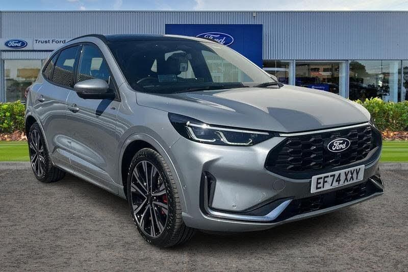 12.3 digital colour instrument cluster, 360 degree view camera, Clear exit assist, Cross traffic alert with active braking, e-Call (emergency call), Ford easy fuel, Ford SYNC 4 Navigation with 13 touchscreen, DAB radio, emergency assistance, Andriod Auto/Apple CarPlay, 5G modem & Ford Pass connect, Front and rear parking sensors, Hands free power tailgate, Lane centering assist, Lane keeping aid with lane departure warning, Power assist steering, Selectable drive modes, Service interval indicator, Auto headlamps with high and low beam, Black roof rails, Body colour bumpers, Front LED fog lamps, Large rear spoiler, LED daytime running lights, LED rear lights, LED third brake light, Pop out door edge protectors, Power front/rear windows with global close, Power heated folding door mirrors with puddle lights, memory function and camera, Quickclear heated windscreen, Rain sensing wipers, Rear privacy glass, Rear side wing doors, Rear wiper, ST-Line body styling kit, 2nd row sliding seats, Electronic automatic temperature control (EATC), Front and rear head restraints, Partial premium touch sensico upholstery, Rear centre head restraint, Single front passenger seat, Sports seats, 3x3 point rear seatbelts, Airbags - front driver/passenger, front and rear curtain, Drivers knee airbag, Dynamic brake support, Electronic stability control (ESC) and ABS, Evasive steering assist, Ford MyKey Gen 2 safety system, Manual child proof rear door locks, Pre collision assist with autonomous emergency braking, Rear seat Occupancy alert, Red brake calipers, Tyre pressure monitoring system