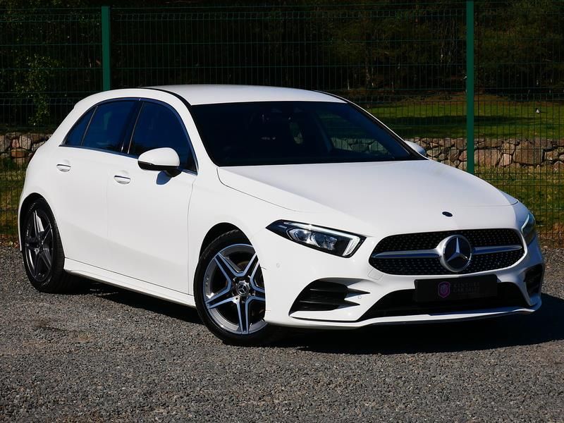Advanced navigation package,ARTICO/DINAMICA micofibre black,Light longitudinal-grain aluminium trim,Polar White gloss,Premium equipment line,1332 cc 1.3 litres in-line 4 engine with 72.2 mm bore 81.4 mm stroke 10.6 compression ratio variable valve timing/camshaft and four valves per cylinder Engine code: M 282 and 10.6,12v power outlet located in front section front,1 autonomous drive active lane control,40/20/40 split folding rear seats: bench type with space for three people; with zero electric adjustments front,43 litre 9.5 UK gallon main fuel tanks main,7.0 inch multi-function display screen(s) Instrument panel 1 and 17.8 7.0 inch touch sensitive multi-function display screen(s) Dashboard 1 touch pad and 17.8 Dashboard centre 1,7.0 inch multi-function display screen(s) Instrument panel 1 and 17.8 7.0 inch touch sensitive multi-function display screen(s) Dashboard 1 touch pad and 17.8 instrument cluster 1,ABS,Alloy & leather multi-function steering wheel with tilt adjustment and telescopic adjustment,Alloy trim on dashboard,Ambient lighting,AMG Line trim level - JATO classification: S2,Anti collision system which activates brake lights and brakes at low speed and includes brake assist driver monitor visual/acoustic warning and pedestrian & cyclist avoidance system ; min speed 7 km/h,Anticorrosion warranty: 360 months Unlimited miles Unlimited km,Anti-theft protection with interior monitoring,Apps control,Audio system with touch screen ; radio receives AM/FM/LW digital and RDS colour screen,Automatic air conditioning with two climate control zones,Automatic smart card/key includes keyless start,Bluetooth includes music streaming,Body colour power door mirrors/cameras ; heated with integrated indicator lights driver,Body colour power door mirrors/cameras ; heated with integrated indicator lights passenger,Brake assist system,Built-in Apps,Central door locking: Operated by remote,Centre armrest between front seats,Charges: VAT [20%] = 4674.17 VED (Standard Rate) = 145.00 FRF = 55.00 VED (First Year 111 - 130 g/km) = 170.00 Additional Charges (GB) = 25.00,Chrome/bright trim around side windows,Computer includes average speed average fuel consumption instantaneous fuel consumption and range for remaining fuel,Connections for USB (front),Cornering brake control,Cruise control,Cup holders for front seats front seats,Cylinder shutdown,Data completeness: up to date pricing data up to date data for key leasing items specifications data from official documentation up to date colour & trim data up to date option pricing data up to date option content data and up to date incentives data,Date introduced: Model introduced 01 Jun 2018 and Version introduced 01 Jun 2018,Day time running lights,Driver and passenger seat: sports type driver,Driver and passenger seat: sports type passenger,Dual clutch sequentialgearbox,Electrical system 12,Electronic brake distribution,Electronic hand brake,Electronic traction control,Emissions: EU6.2 (C and D-Temp) compliant and 123 g/km CO2 (max),Energy recuperation engine,Engine start/stop,Euro NCAP crash test results: Overall: 5.00 Adult occupant: 96.00 Child occupant: 91.00 Pedestrian: 92.00 Safety assist: 75.00 Version tested: Mercedes A180d 5dr HA Date tested: 01 Oct 2018 Euro NCAP,External dimensions: 4419mm long 1796mm wide 1440mm high 104mm ground clearance 2729mm wheelbase 1567mm front track 11000mm turning circle (kerb to kerb) 174.0 inches long 70.7 inches wide 56.7 inches high 4.1 inch ground clearance 107.4 inch wheelbase 61.7 inch front track and 36.1 foot turning circle (kerb to kerb),External temperature,Five door hatchback ; Platform code: MFA2 Right hand drive,Five seats configured 2+3,Fixed delivery charges: 635.00 529.17 (excluding VAT) fuel included 0 litres,Floor console floor,Floor mats,Four disc brakes including two ventilated discs,Front and rear electric windows with one-touch on two windows front,Front and rear electric windows with one-touch on two windows rear,Front and