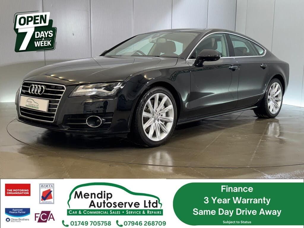 Black interior.Quote stock number: 151 Here at Mendip Autoserve Ltd, we are pleased to offer this exquisite Audi A7 3.0 V6 SE Executive Sportback 5dr PETROL S Tronic quattro Euro 6 (s/s) (310 ps). A marvel of engineering and design, this model comes in a sleek black finish and boasts a robust 3.0-litre engine delivering 310 bhp, ensuring a thrilling drive with a top speed of 155 mph and an impressive acceleration from 0 to 60 mph in just 5.5 seconds. Despite its power, it remains economical with a fuel consumption rate of 54.3 mpg and is ULEZ exempt, making it an ideal choice for both performance enthusiasts and environmentally conscious drivers. The vehicle comes with over £5,000 of optional extras that enhance both its functionality and luxury. The Walnut Brown inlays add a touch of elegance to the interior, creating a warm and inviting atmosphere. Audi Matrix LED headlights provide superior illumination, significantly improving night-time visibility and safety. The heated, electrically adjustable, folding, and auto-dimming door mirrors with memory function offer convenience and ease, adapting to different drivers' preferences effortlessly. Comfort is paramount with heated front and outer rear seats, perfect for those chilly mornings. Lastly, the leather armrest doors elevate the feel of the cabin, providing a soft, luxurious touch that complements the full leather upholstery. With only one previous owner, a full dealership service history, a long MOT, and just 61,909 miles on the clock, this Audi A7 is not just a car but a prized possession waiting to be cherished. Whether navigating tight city streets or cruising on the motorway, this car promises a dynamic and comfortable driving experience. You'll love how it combines performance, luxury, and practicality into one outstanding vehicle. This Audi A7 is a prime example of the excellence of Japanese imports, renowned for their meticulous maintenance and lower mileage the benefits of Japan's extensive public transport network and salt-free roads. The comprehensive service history of this car is a testament to its well-maintained past, reflecting the care and attention it has received over the years. As an authorised BIMTA dealer, we uphold the highest standards, verifying each vehicle's quality and history. This Audi A7 comes with BIMTA and JEVIC-verified mileage certificates, and we have professionally adapted the speedometer and radio to align with UK specifications. Being a European model, this vehicle benefits from hassle-free maintenance and readily available parts in the UK, all of our Japanese imported cars are hand-picked by experts in Japan, they are also parallel imports, meaning they are identical to UK specifications, which ensures they can be insured the same as a UK car. This car meets CAZ and ULEZ standards.
