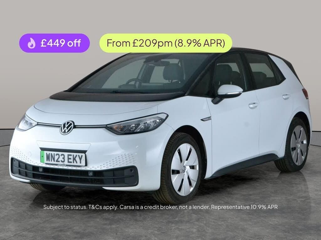 Discover the Volkswagen ID.3 Life, a sleek white electric hatchback packed with comfort and technology. Enjoy the luxury of heated seats, a wireless charger, and seamless connectivity with Bluetooth and sat nav. LED headlights light the way, while adaptive cruise control and front and rear parking sensors make every journey a breeze. Dual zone digital climate control ensures a perfect cabin environment. Effortlessly stylish and impressively equipped, the ID.3 is perfect for modern driving. 1 service recorded, last serviced on 14/03/2026 at 14,962 miles. MOT to 14/03/2027. Visit our website for service history, online valuation, full vehicle specification plus multiple images. This vehicle is VAT qualifying. Any feature/option specified here is from 3rd party data. We cannot guarantee the accuracy of any specification supplied by a 3rd party. We recommend that you physically check the specification of the vehicle on site prior to purchase. This information does not form part of the buying contract. Terms & Conditions apply. We have over 2,000 cars available from our 10 national branches, check our website to see all our stock. Our Trustpilot rating is 4.4/5 with over 9,000 reviews.