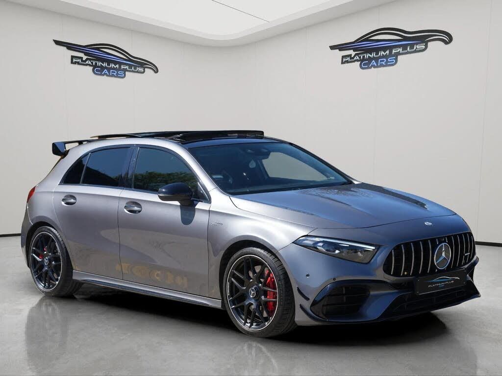 10.25in Media Display, 19in Alloy Wheels - AMG Forged Cross-Spoke - Painted Matt Black with a High-Sheen Rim Flange, ABS - Anti-Lock Braking System with BAS - Brake Assist, AMG A 45 S Bodystyling, AMG Aerodynamics Package, AMG Bodystyling - Front and Rear Apron, AMG Centre Console - Decidedly Sporty with Raised Front Section, AMG Centre Console is Finished with Trim in Silver Chrome, AMG Drive Unit including AMG Dynamic Select Controller, AMG Drivers Package, AMG Dynamic Select with a Choice of Driving Modes, AMG Instrument Cluster with Colour Display and AMG Menu, AMG Leather Package, AMG Night Package, AMG Sports Pedals in Brushed Stainless Steel with Rubber Studs, AMG Sports Suspension, AMG Track Pace - Records Lap Times on the Racetrack, ATTENTION Assist, Active Bonnet - Pedestrian Safety Measure which Detects an Impact and Raises Bonnet by 65mm, Active Brake ASSIST, Active Lane Keeping Assist, Adaptive Brake Assist with Hold Function and Hill Start Assist, Adaptive Brake Lights, Air Conditioning - THERMOTRONIC Luxury Automatic Climate Control - Two-Zone with Display, Air Vents - Black with Silver Chrome Elements, Airbag - Kneebag for Driver, Airbags - Dual Stage - Driver and Front Passenger, Airbags - Windowbags for Driver and Front Passenger, Alarm System with Immobiliser and Interior Protection - Thatcham Category 1, Automatic Child Seat Recognition Sensor, Beltline Strips - High Gloss Black, Blind Spot Assist, Bonnet with Power Domes, Brake Calipers - Front and Rear Painted Red with AMG Lettering on Front and Rear Calipers, Brake-Pad Wear Warning Indicator, Bumpers - Body Coloured, Burmester Surround Sound System, Centre Armrest - Front with Stowage, Childproof Locks - Manually Operated for Rear Doors and Electrically Operated for Rear Power Windows, Crash-Responsive Emergency Lighting, Cruise Control with Limiter, DAB Digital Radio Tuner, Door Handles - Body Coloured, Door Mirrors - Electrically Adjustable and Heated with Integrated LED Indicators, Dual Bluetooth Interfaces, ESP - Electronic Stability Programme - Three-Stage, ESP - Electronic Stability Programme with ASR - Acceleration Skid Control, ESP Curve Dynamic Assist, Electric Parking Brake, Electric Windows - 4, Exhaust System - AMG Real Performance Sound, Exhaust System - Two Round Twin Tailpipe Trim Elements, Exhaust System with Valve Control Dependant on Drive Program, Exit Warning Assist, First Aid Kit and Warning Triangle, Floor Mats - AMG, Glass - Rear Windscreen - Heated with Timer Control, Hard-Disk Navigation, Headlamp Assist - Automatic Headlamp Activation, Heated Front Seats, Hey Mercedes - Voice Activation, High Level Third Brake Light - LED, ISOFIX and Top-Tether Child Seat Fixing Points in Rear - Two Outer Seats, Illuminated Front Door Sills with Mercedes-Benz Lettering, Instrument Cluster - Outside Temperature Display, Instrument Cluster - Service Indicator ASSYST, Instrument Cluster - Trip Computer in Multi-Function Display with Current Fuel Consumption Indicator, Instrument Display - 10.25in Display, Integrated Radio Aerial, Interior 64-Colour Ambient Lighting, KEYLESS-GO - Keyless Locking-Unlocking, KEYLESS-GO Starting Function, LED Tail Lights, Light Failure Indicator, Light and Sight Package, Live Traffic Information, Luggage Compartment Cover, MBUX Augmented Reality for Navigation, MBUX Multimedia System, MULTIBEAM LED Headlights with Adaptive Highbeam Assist Plus, Mercedes Me Connect - Standard Services, Mirror Package, Multi-Contour Seat Package, Panoramic Glass Sunroof, Parking Package, Power Steering - AMG Speed Sensitive Sports, Pre-Installation for Mercedes-Benz Link, Pre-Installation for Private Car Share, Pre-Installation for Vehicle Monitoring, Pre-Installation for Vehicle Set-Up, Privacy Glass, Radiator Grille - AMG-Specific Radiator Grille in High-Gloss Chrome with AMG Lettering, Rain-Sensing Windscreen Wipers with Two Sensitivity Settings, Rear Armrest with Two Cup Holders, Rear Axle - Multi-Link, Rear Fog Light, Rear Windscree