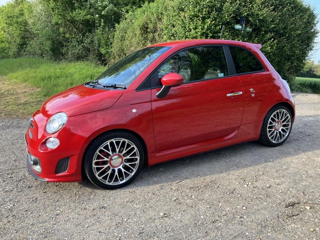 Abarth 595 1.4 T-Jet Turismo model. 165 bhp model - Incredibly fast. Garrett GT 1446 Turbocharger. Incredibly low mileage at 17,300. 2 Former keepers - the last being an elderly lady who bought it at 5,850 miles from Fiat Wlmg main dealership Reading back in 2018. A file full of Service documentation consisting of invoices & receipts. Gleaming Red paintwork with no silly stripes. Bi-Xenon headlights for enhanced visibility. Full black Abarth leather upholstery. Electric front windows. Tyre Pressure Management System (TPMS). Blue & Me (+ USB) hands free system with Bluetooth connectivity allowing seamless integration. Factory fitted Interscope Hi-Fi sound system which has very impressive sound.
