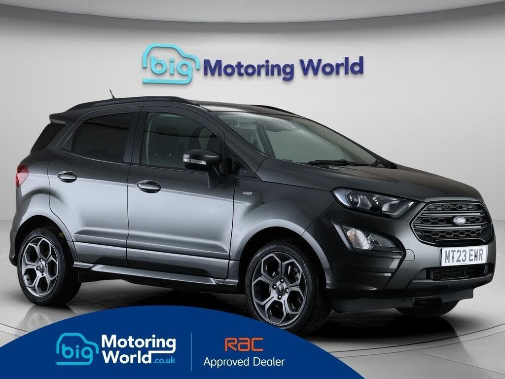 Leather Seats,Bang & Olufsen S-Our Ford EcoSport comes with optional extras worth £1,325. Specification includes a range of fantastic features including Leather Seats, Bang & Olufsen Speakers, Cooled Glovebox, Ford SYNC, Privacy Glass, ST Style Pack, Heated Windscreen, Internet, Bluetooth, Parking Sensors Specification information is supplied by CAPHPI and may vary to the actual car. This data does not form any part of a buying contact. Please check specification prior to purchase in-store. The MOT is valid until March 2027, visit bigmotoringworld.co.uk for more photos, a 360 tour, service history and a free HPI report.Were BIG on peace of mind and this Grey Ford EcoSport has completed our comprehensive 200 point inspection and passed all checks. Its ready for you to drive away with immediate collection in-store. We include a 90-day warranty as standard plus an option to extend for up to 3 years.Reserve this car exclusively for you, safely and securely at bigmotoringworld.co.uk, with a fully refundable £99 deposit. Test drive before you buy, with no commitment, no hassle and a completely haggle free experience. Still searching and want to see thousands more cars? We are BIG on choice with over 8000 cars to choose from.Visit our award winning web site bigmotoringworld.co.uk.Were Big Motoring World and were BIG on what matters to you.