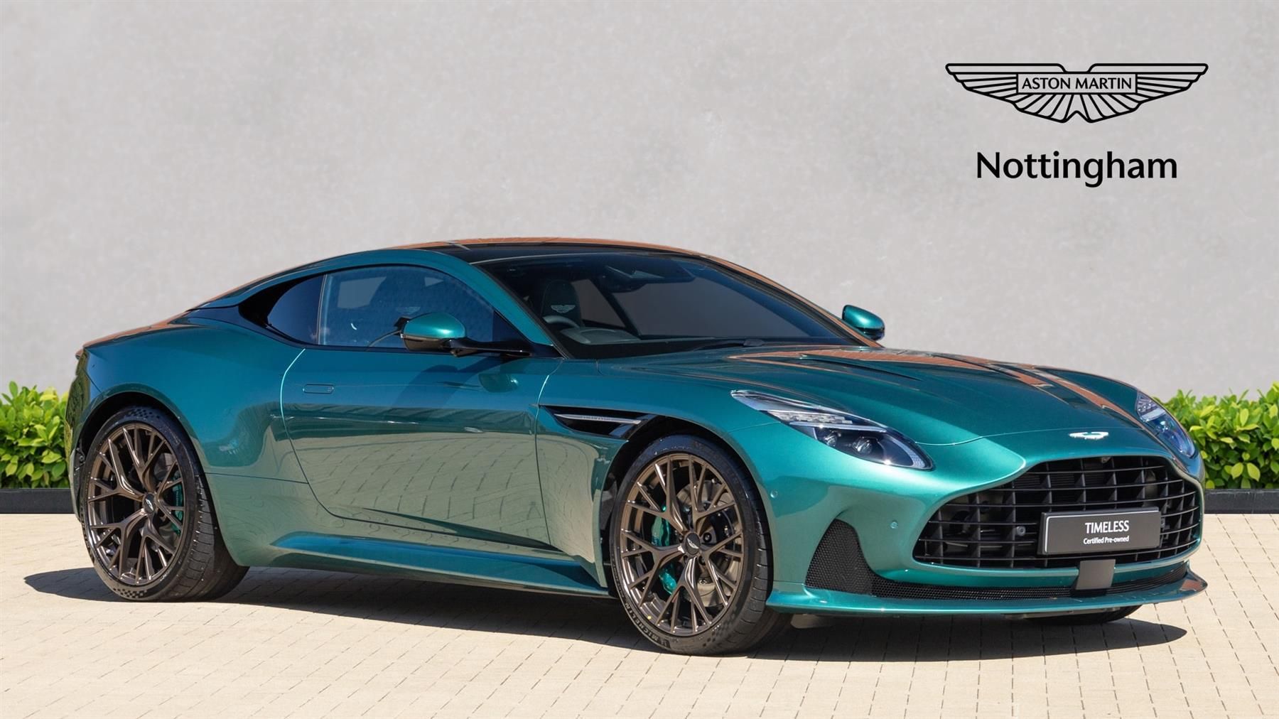 21" Y Spoke Satin Bronze Alloy Wheels,Brake Callipers In Aston Martin Racing Green,Aston Martin Wings Embroidery In Headrests,Body Coloured Exterior Lower Pack,Body Coloured Exterior Upper Pack,Gloss Black Front Grille,Matte Black Bonnet Vents,Panoramic Glass Roof,Aston Martin Premium Audio System,Rear Privacy Glass,Interior Contrast Stitching,Heated Sports Steering Wheel,Smoked Rear Lights,Inspire Sport Monotone Interior,Enamel Aston Martin Wing Badges & Script Badges,Interior Gloss Black Centre Trim Inlay,Bright Twin Exhaust Finishers,Sport Plus Seats,Black Seatbelts,Aston Martin Tracking System