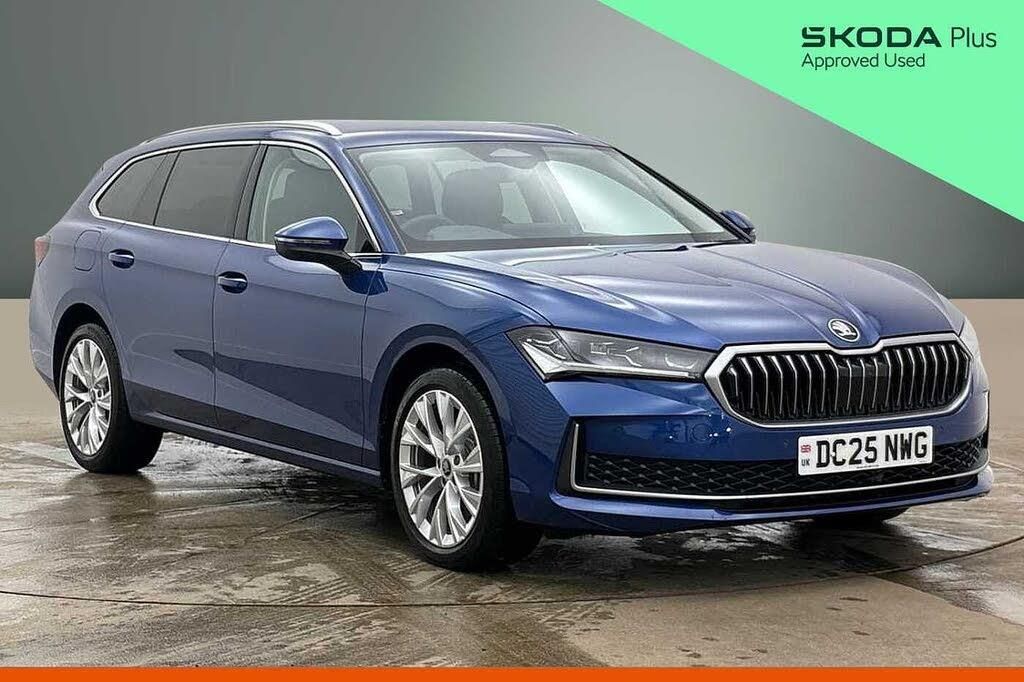 Exterior Features, Metallic paint, Safety, Front and rear parking sensors, PAS, Rear view camera, Tyre pressure monitor, Interior Features, 2 spoke multifunction steering wheel with DSG paddles, Paint - Metallic, Metallic - Cobalt blue, Trim - Part Leather, Suite design selection pack - Leather/Artificial - Black with grey stitching, Exterior Features, Acoustic side windows and interior noise suppression, Privacy glass, Rear windscreen wiper, Windscreen wipers with rain sensor, Body colour door handles, Chrome roof rails, Chrome window surround, Dark chrome grille surround, Ice scraper in fuel tank cap, Rear roof spoiler, Rear side wing doors, Unique dark chrome design logo on alloy wheels, Backdrop lighting, Dynamic range control with poor weather light and integrated fog light, LED 3rd brake light, Light assist with High beam control, Light assistant (coming/leaving home/tunnel light), Rear fog lights (x2), Safety, Electronic parking brake, ESC including ABS, EBV, MSR, ASR, EDS, HBA, DSR, RBS, CBC, multi-collision brake (MKB) and Auto hold, Hill hold assist, Adaptive cruise control with speed assist,lane assist plus and traffic tram assist, Blind spot detection with door exit warning, Drive mode selection, Front assist with extended predictive pedestrian protection, Front cross traffic assist, Traffic sign recognition, Turn assist with evasive assistance, Body coloured door mirrors, Electrically adjustable, heated, folding and driver side auto-dimming door mirrors with memory function, integrated indicators and logo projection, Frameless auto-dimming rear view mirror with USB-C, 3 rear seatbelts, 8 Airbags - Front driver and passenger,front side driver and passenger,centre,curtain front and rear,drivers knee, Crew protect assist, Driver and passenger seatbelts with warning light, Power operated child lock in rear doors, Audio / Communications, 4x USB-C ports (2x in front centre console and 2x in rear) (45W), Bluetooth system, CareConnect and Emergency Call, Voice control system, DAB Digital radio, Display cleaner, FM radio connection, Web radio connection, Driver Convenience, 13" touchscreen display with satellite navigation, Quick start all heating software functionality, Stop/start engine system, Washer for rear camera, Wireless charging for one smartphone (15W) with cooling function, Miscellaneous, ChatGPT functionality, Driver fatigue sensor, Virtual Cockpit - 10.25" digital display, Wireless smartlink apple carplay, SmartLink+ android auto, Trim, Decorative front door sills, 14-way electrically adjustable, memory, front seats with 4-way pneumatic lumbar support, and extendable thigh support with smart comfort entry aid, 3 seat bench in 2nd row, 60:40 Split folding rear seats, Advanced massage function for front seats, Front sports comfort seats, Heated and ventilated front seats, Height adjustable front and rear head restraints, Isofix child seat fittings in outer rear and front passenger seats, Single front passenger seat, Storage pockets on back of front seats, Interior Features, Tri zone climate control, 12V socket 1x centre console 1x boot, 2x cargo elements in boot, 4x foldable bag hooks in boot, Bottle holders in the front doors 1.5 litre bottle and rear 1.5 litre bottle, Cup holder in front with easy open mat, Front armrest with storage box, Skoda lettering on steering wheel, Storage compartment with cover, Ticket holder on A Pillar, Umbrella in driver's door, 2x light in boot, Illuminated glovebox, Interior lights with control switches, LED front and rear reading lights, Sun visors with illuminated vanity mirrors, Packs, Light and view package - Superb, Transport package - Superb Estate, Security, Alarm with interior monitoring tilt sensor and back up horn, Backrest remote release from trunk, Electronic engine immobiliser, Keyless start/stop, Remote central locking with SAFE system, Third key, Walk away locking, Vehicle Charging, Mode 3 charging cable, Wheels, Tyre repair kit