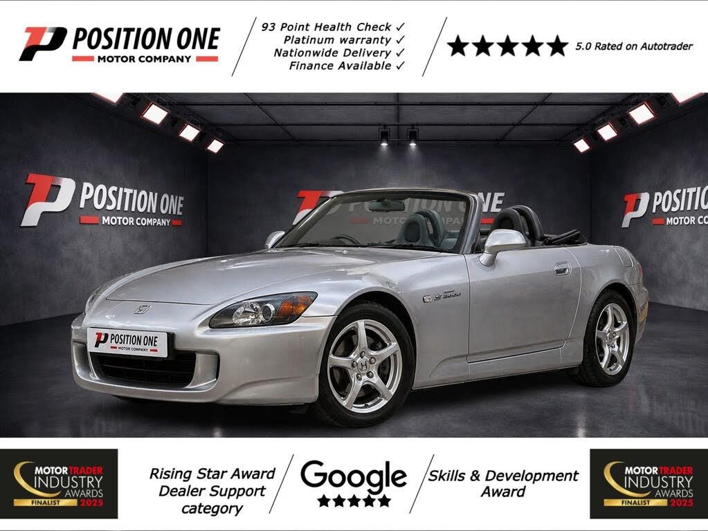 Black interior.Every vehicle at Position One Motor Company undergoes a comprehensive 93 point health check before it is advertised, ensuring it is mechanically sound and ready for its next owner. Nationwide delivery is available. Finance is available, and extended Platinum warranties can also be arranged for added peace of mind. Position One Motor Company are delighted to offer this 2003 Honda S2000 2.0 Roadster, finished in Moon Rock Grey metallic with black leather interior. With just 62,500 miles and only 3 previous owners, this is a superb and increasingly hard to find example of one of Hondas most iconic performance cars. What makes this particular S2000 stand out is that it remains completely original, something that is becoming rare as many examples have been modified over time. Powered by Hondas legendary 2.0 litre VTEC engine producing 236 bhp, paired with a precise manual gearbox and rear wheel drive, the S2000 is widely regarded as one of the best drivers cars of its era. It offers sharp handling, perfect balance and a high revving naturally aspirated engine that delivers a genuinely engaging driving experience, with 0 to 60 mph in around 6.2 seconds. This example also benefits from brand new Michelin Pilot Sport tyres all round, giving excellent grip and further enhancing the driving experience straight away. It also includes a tonneau cover, which neatly covers the folded soft top and improves the overall look when driving roof down. The Moon Rock Grey metallic paintwork gives the car a clean and understated look, while the black leather interior adds a premium, driver focused feel. The Honda S2000 has become increasingly desirable, with values strengthening as enthusiasts recognise just how special these cars are. Finding an original, well cared for example like this is becoming more difficult. All vehicles go through an extensive health check with a main dealer or specialist. Finance is available, extended Platinum warranties are available, and nationwide delivery can be arranged. Contact Position One Motor Company today to arrange a viewing or secure this excellent Honda S2000.