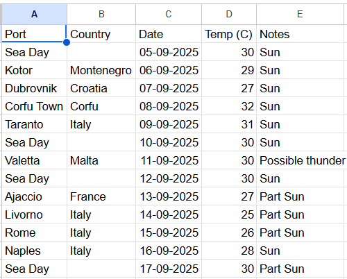 We've nothing booked with VV so far over the next couple of years and no immediate plans to. We'd maybe do the Adriatic again with them at some point or maybe a route that did an overnight in Ibiza again and do the clubs this time.