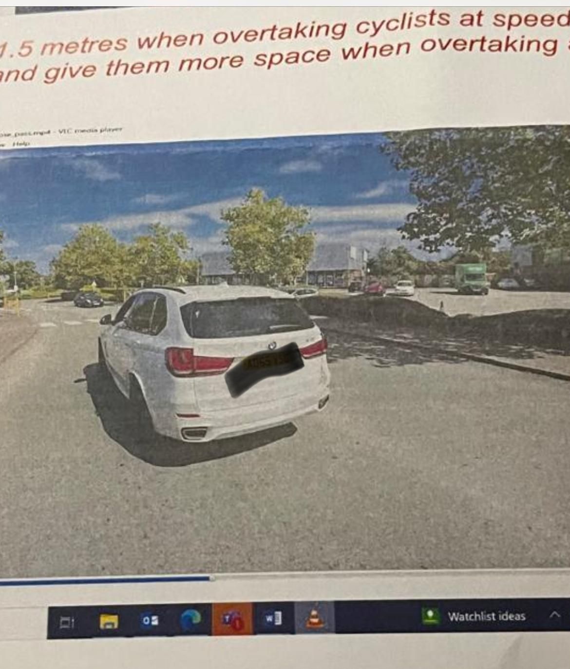 A few weeks later I received a notice of intended prosecution "drive a mechanically propelled vehicle on the road. I confirmed I was driving at the time and some images were attached. No way on the image did it look like I was close to him. I completed the form but sent a letter stating that I left ample room for the cyclist but if they believe I didn't then I do apologise. The letter did state I might be able to do a course, or will get a fine etc.