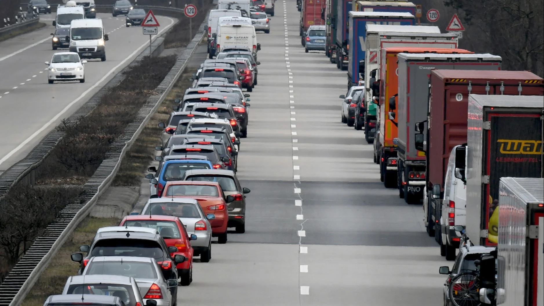 So here is a pic. The incident is about 400m ahead of me. To the left is a Polish lorry that passed the last Red X gantry about a mile back and would have gone through another Red X. When traffic was moving I flashed him to move in front of me, but he decided coming to a complete halt next to me was the best solution.