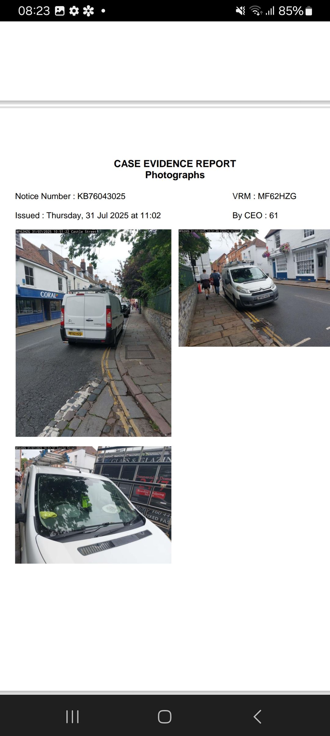 There were no photos of the vehicle at 11.02 and none of the ticket attached to the van.