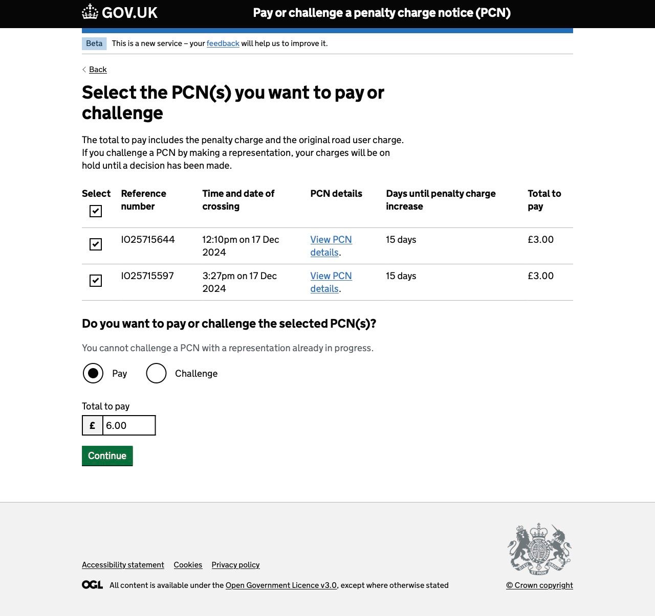 Oddly one just had the crossing amount on, the other had a 'fine' and a higher amount shown. When we came to pay, it did exactly the same and only gave the option to pay the crossing amount and nothing more. So we just paid them and thought nothing more of it.