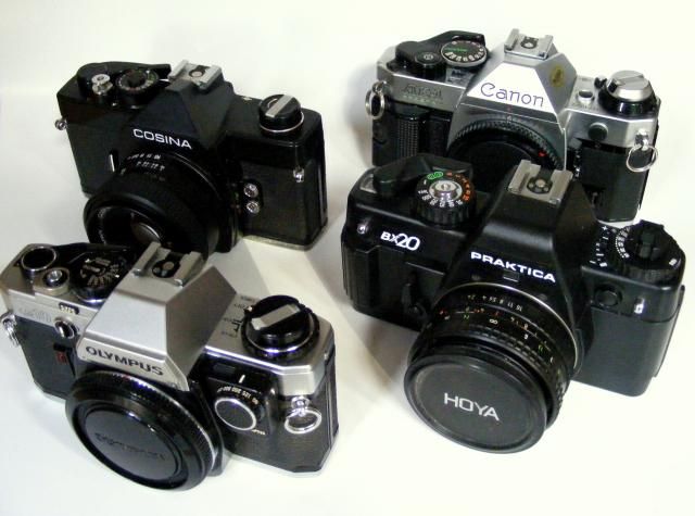 nice mixed bag of 35mm bodies, including a very nice olympus OM10, all seem in good condition
