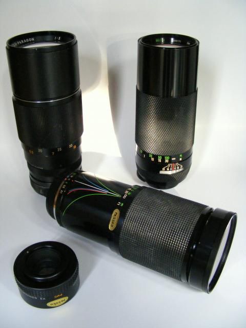 Those bodies are all bayonet fitting so the lenses must have come from something else. Is the zoom telephoto lying down a Vivitar Series 1 70-210?
