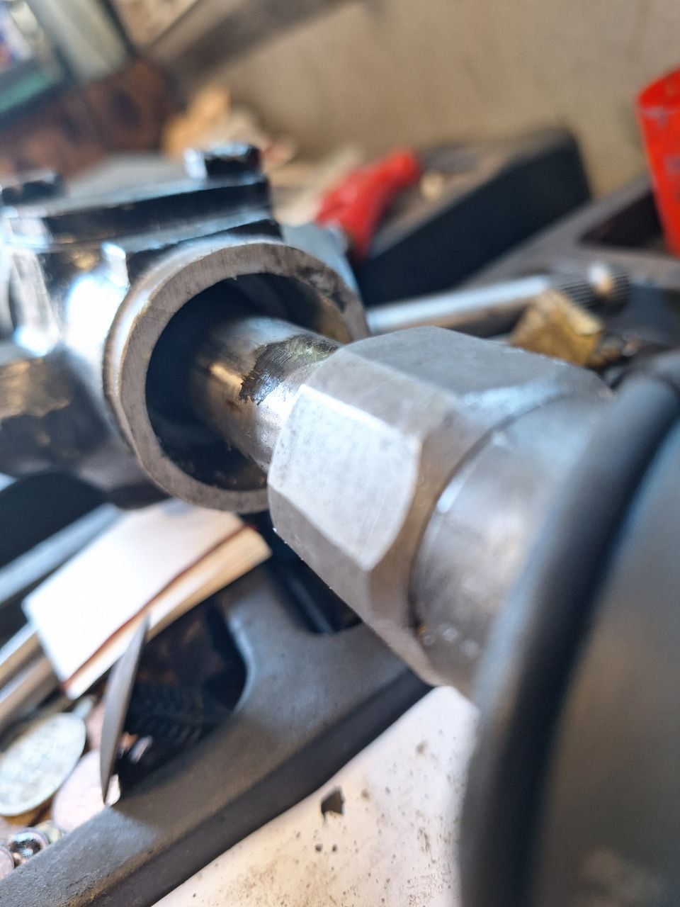 So finally I sent these photos to a rack reconditioner in Netherlands with experience of TVRs who confirmed that the new bushing which is flush with the end of the rack is blocking the rack travel and limiting the steering. Given that the original reconditioner has already said that it is perfect I expect that I will have to resort to a lawyer. Hopefully I will be able to get my money back if not a working rack.