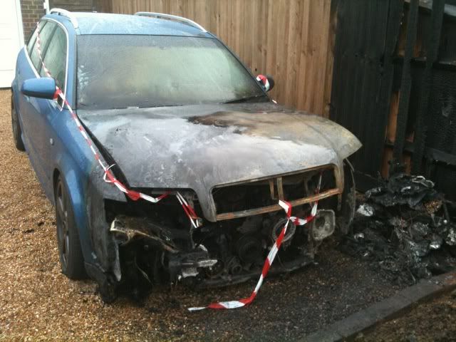 John, the chap who did all the work on our quattros was woken at 02.50 to find his A4 Sline quattro well alight on their driveway yesterday. Their road is bit of a 'cut through' from the town and it appears some intellectual giant decided to start a bonfire under it.