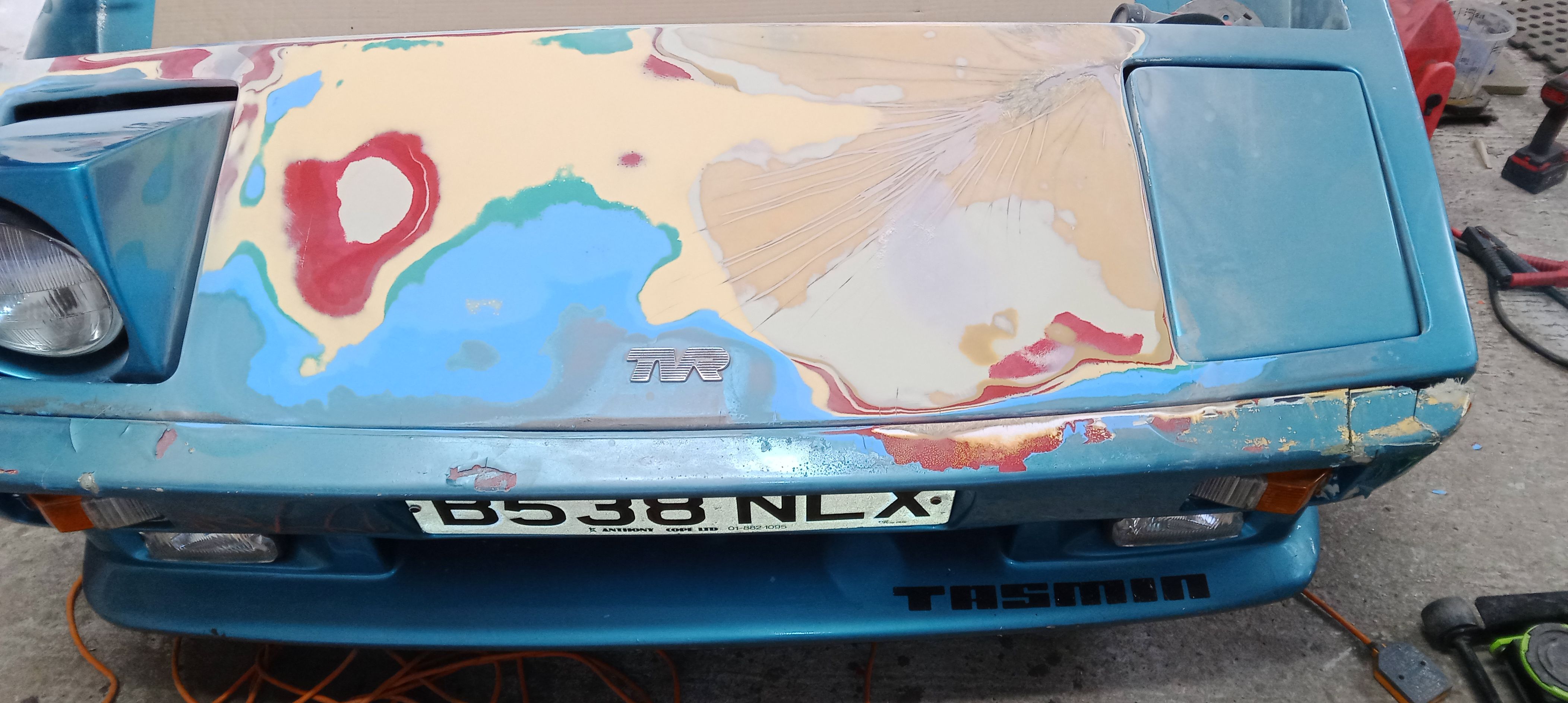 Very tired looking full of star cracks on the front end non running but with what looked like a pretty new chassis and on the register as a cat c or d whichever is non structural I gave £2500 for her initially.