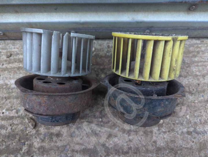 Mark, when you're looking at the picture, you can see I have broken the wheels on those two motors. I did spin up both in a snail (they are out of balance) AND that will still be an issue when a new wheel is installed, it took me ages to get the harmonics sorted by removing a clip from and old wheel from blade to blade). On the metal snail they install the ballast resistor in the air flow, on wedges they run either a ceramic ballast or a Ford blue resistor wire to control 1/2 speed. A@