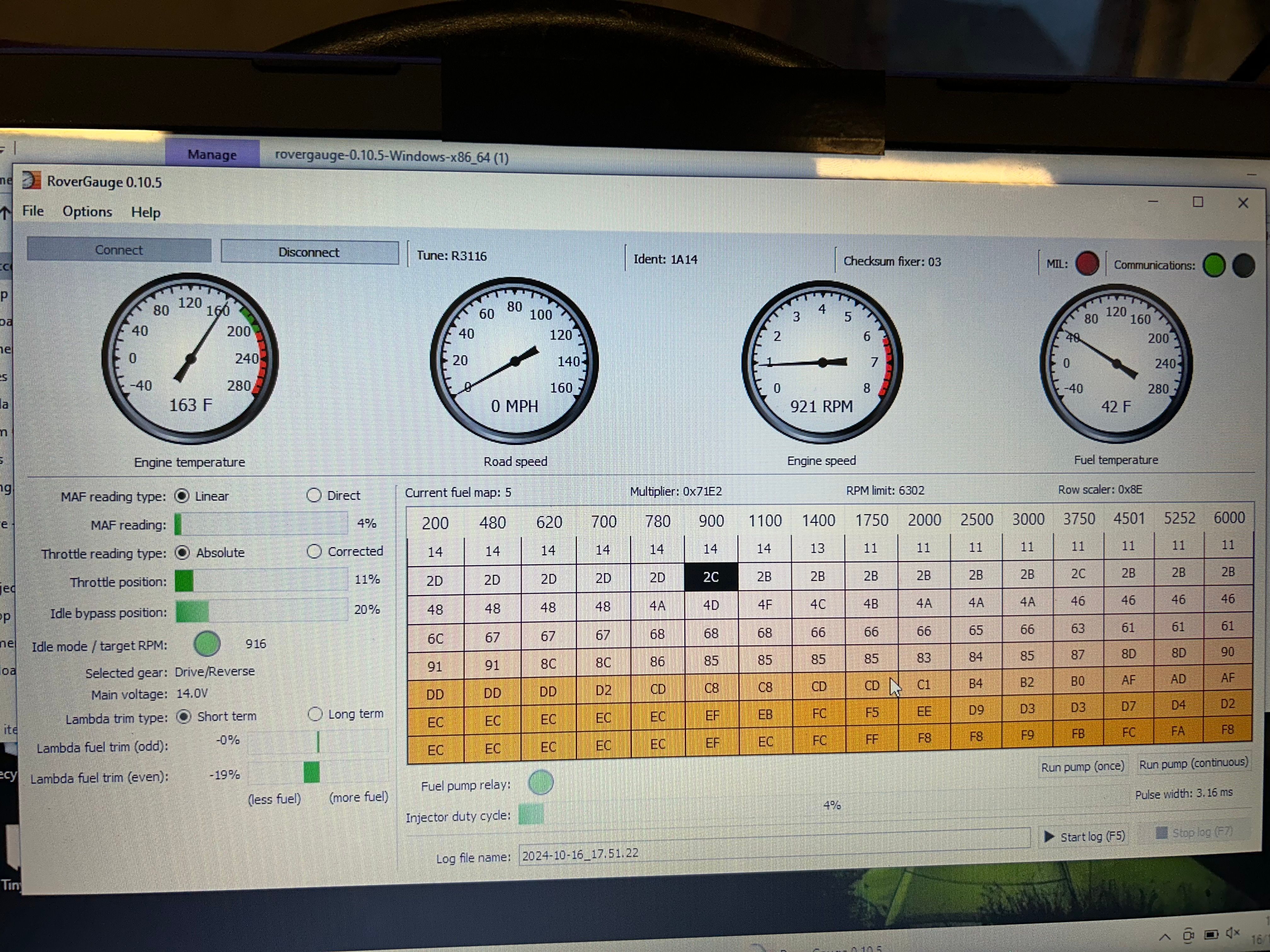 When you get the car back. Have a look at the ECU wiring behind the drop down panel in passenger footwell. If there is a white plug it's a Hotwire and you can plug into it with free Rovergauge software. You just need the cable. One on eBay at the min.
