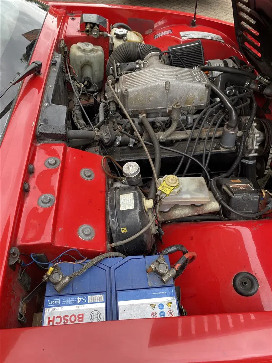 Looks like it has been moved to avoid the alternator which is normally on the other side hiding the water pump. I guess that was moved due to the ignition? module in front of the brake master cylinder and the coil position. Looks to me like it's had a few mods and that air intake pipe has got a bit squished as a result. I thought the air filter should be down under the grill at the corner of the bonnet